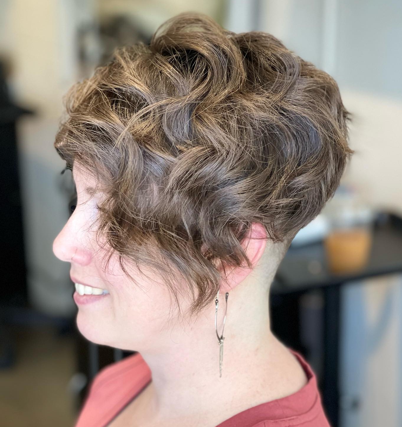 Both symmetrical and asymmetrical pixies are often associated with straight hair, but it doesn’t always have to be that way! Wavy-haired ladies look just as lovely with a short cut, as is exemplified in the photo below. Go for a cropped cut that is still long enough on top to allow your natural waves to show off.