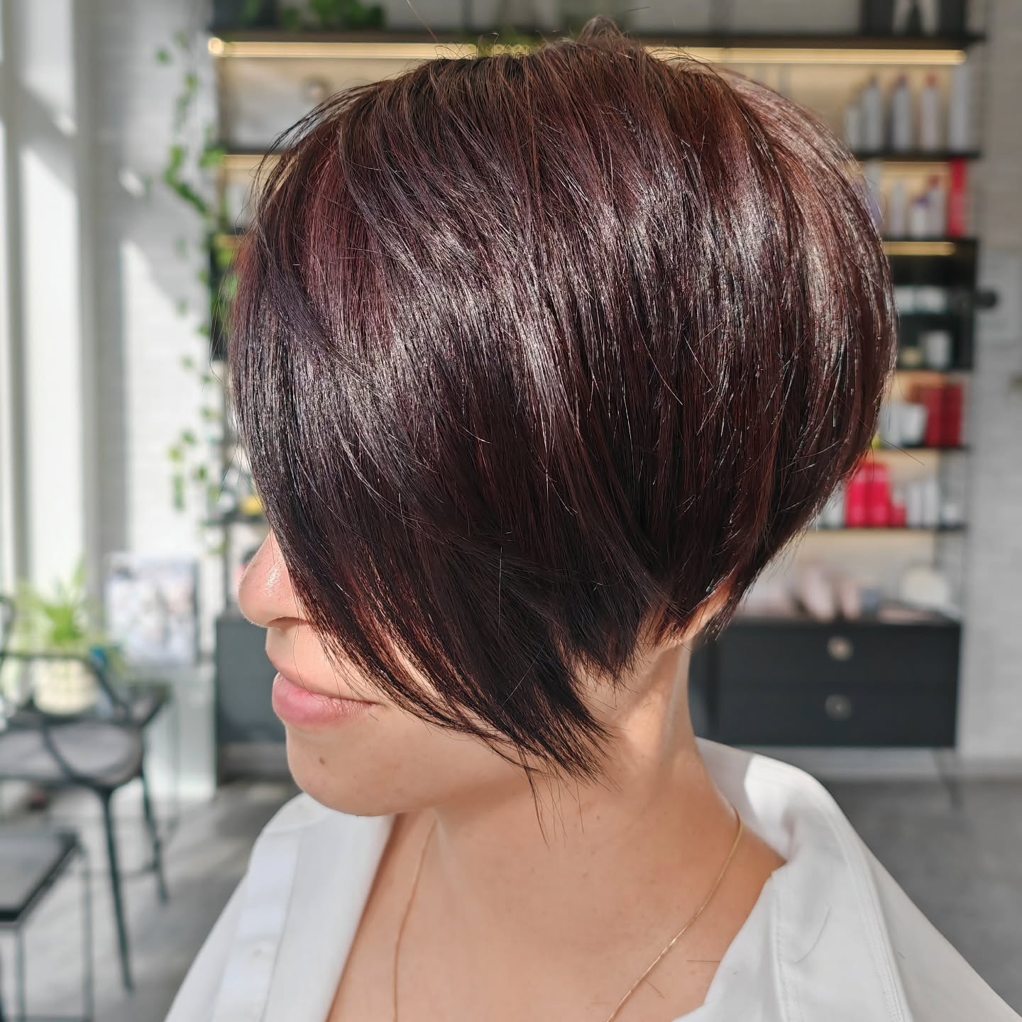 If you plan to visit a salon to get a new cut, be sure to bring pictures that include a side view of your desired chop. It’ll give your hairdresser the inspiration they needs to get this amazing do just right — from the graduated back to layered side bangs, show your perfect cut from all angles!