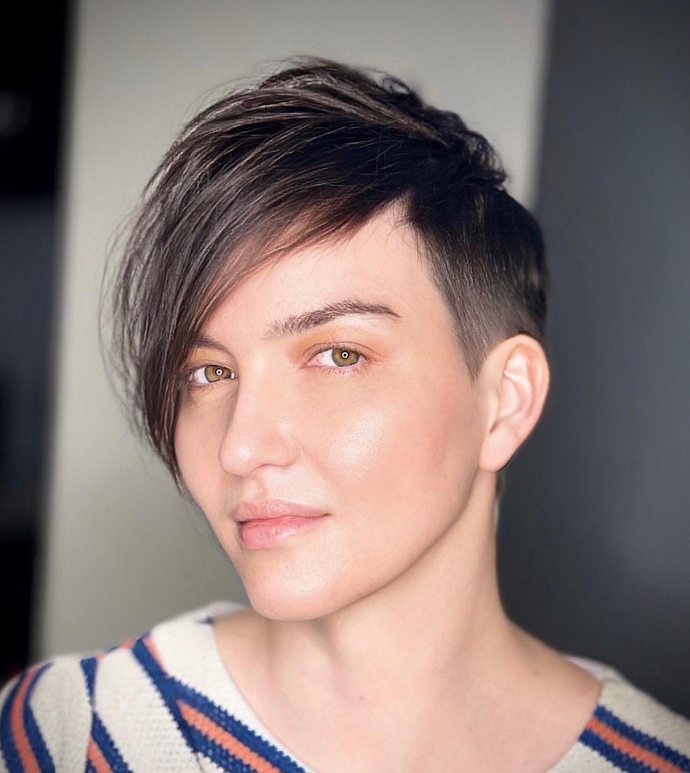 Brunettes look beautiful with short hair, and pixie cuts can flatter a variety of facial types. If you’re looking for a square-face-flattering style, this cut is ideal.