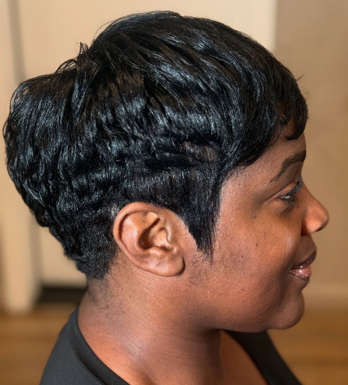 African American women rock the pixie haircut, either with natural or relaxed hair. If you want to truly own a short hairstyle, a pixie cut is ideal. With its minimal maintenance requirements and lovely compatibility with black hair, you will love finding a style all your own.