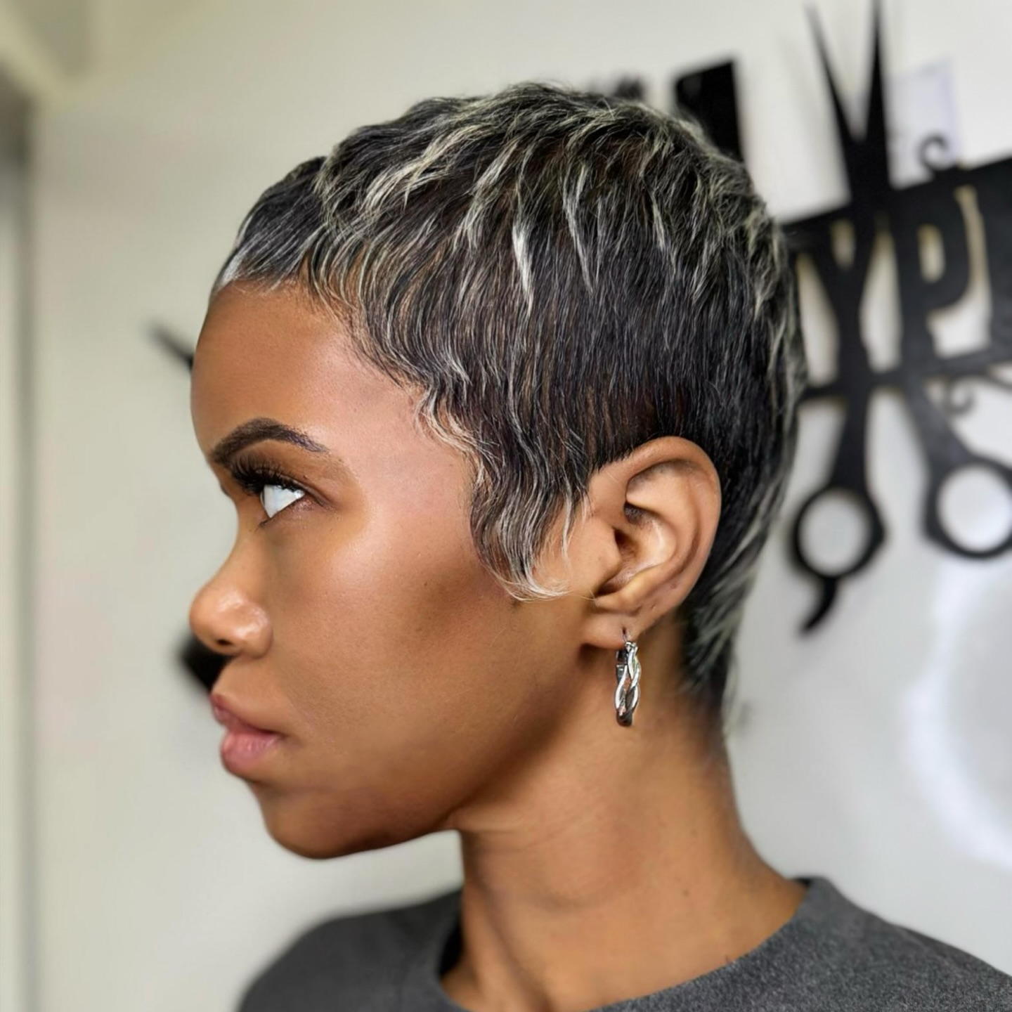 Sometimes blondes do have more fun – especially when it’s a gorgeous, confident African-American with blonde highlights! Black pixie cuts don’t have to commit to one hue – mix it up with blonde, red or vibrant neon colored highlights.