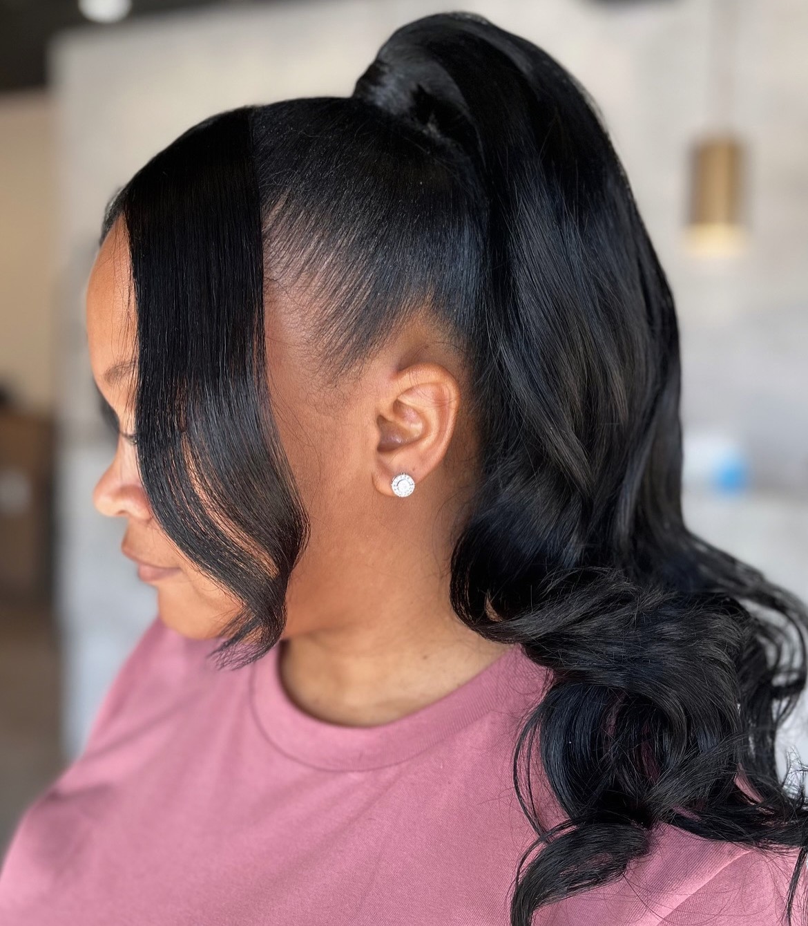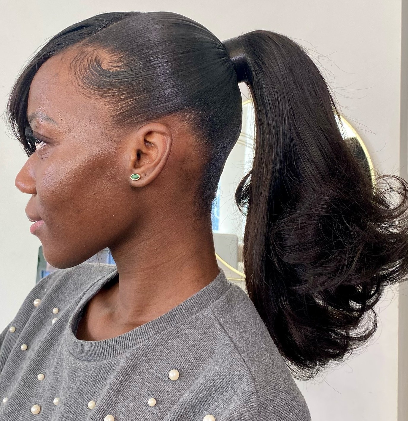 Ponytails with weaves are stunning – they add length and a brilliant shine. To keep that gloss, use hair oil and sleep with a silk bonnet or scarf. It keeps your long locks looking great, even if they aren’t technically yours.
