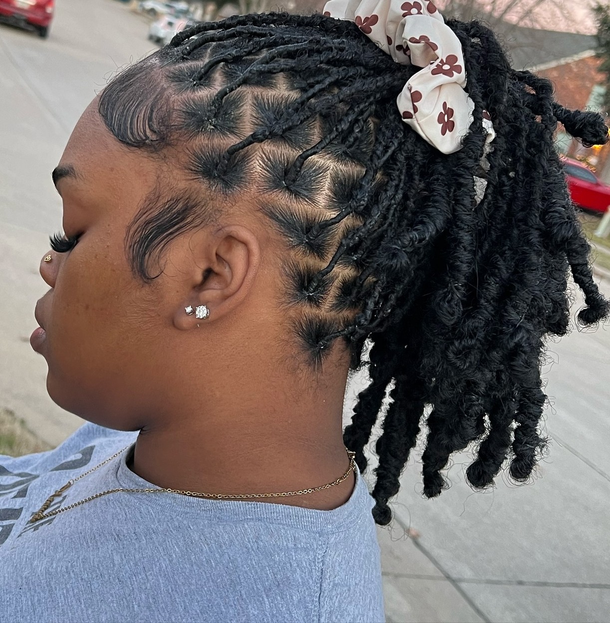 If you hate putting heat on your curls but love color, then this is the hairdo for you. You can proudly spotlight your natural coils with this fluffy afro puff. Plus, updo styles for natural hair don’t get any easier than this one. Opt for a low-tension hair tie, like ribbon elastics or spiral hair bands, to reduce the chances of breakage.