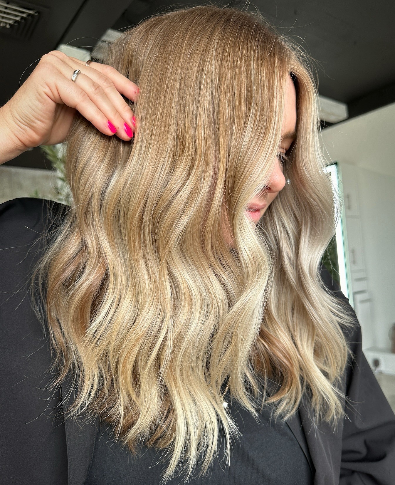 Subtly dark roots with lustrous blonde lengths show the natural side of a good balayage. Tousled blonde tresses are a smart choice for those who want a minimalist hairstyle with maximum impact.