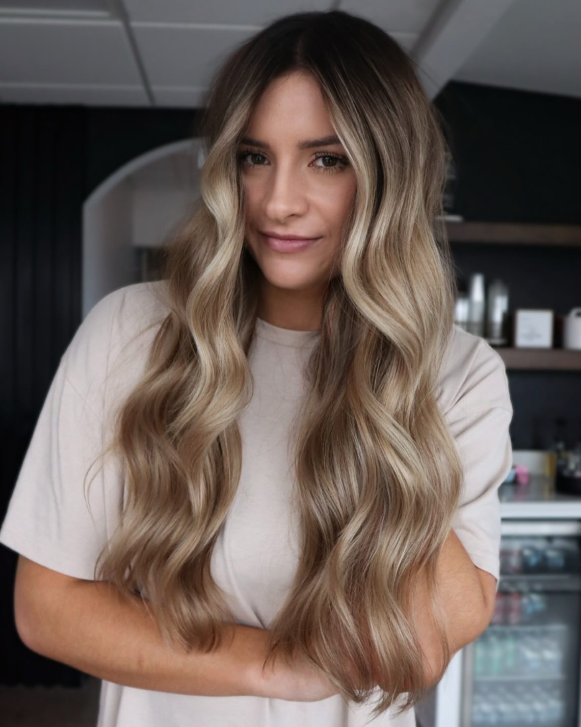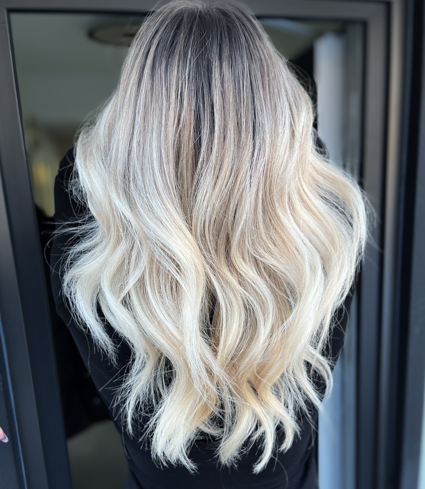 Subtly dark roots with lustrous blonde lengths show the natural side of a good balayage. Tousled blonde tresses are a smart choice for those who want a minimalist hairstyle with maximum impact.