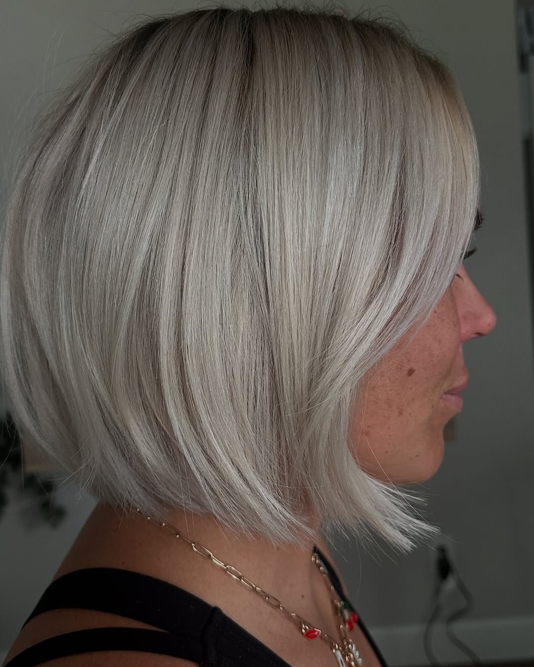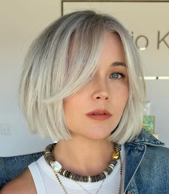 Bob is a great cut option for those with fine hair because it keeps its own shape. If you’ve always kept your tresses long, take a trip to the other side and discover how beautiful you’ll feel with this stacked platinum bob.