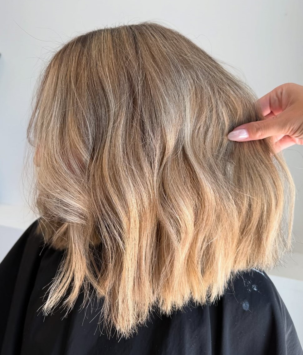 Adding waves to the lob with ash balayage can make a huge difference to the overall effect of the hairstyle. The subtle kink here adds a new dimension to the hair. It’s also really easy to do at home – all you need is a curling tong or a straightener.