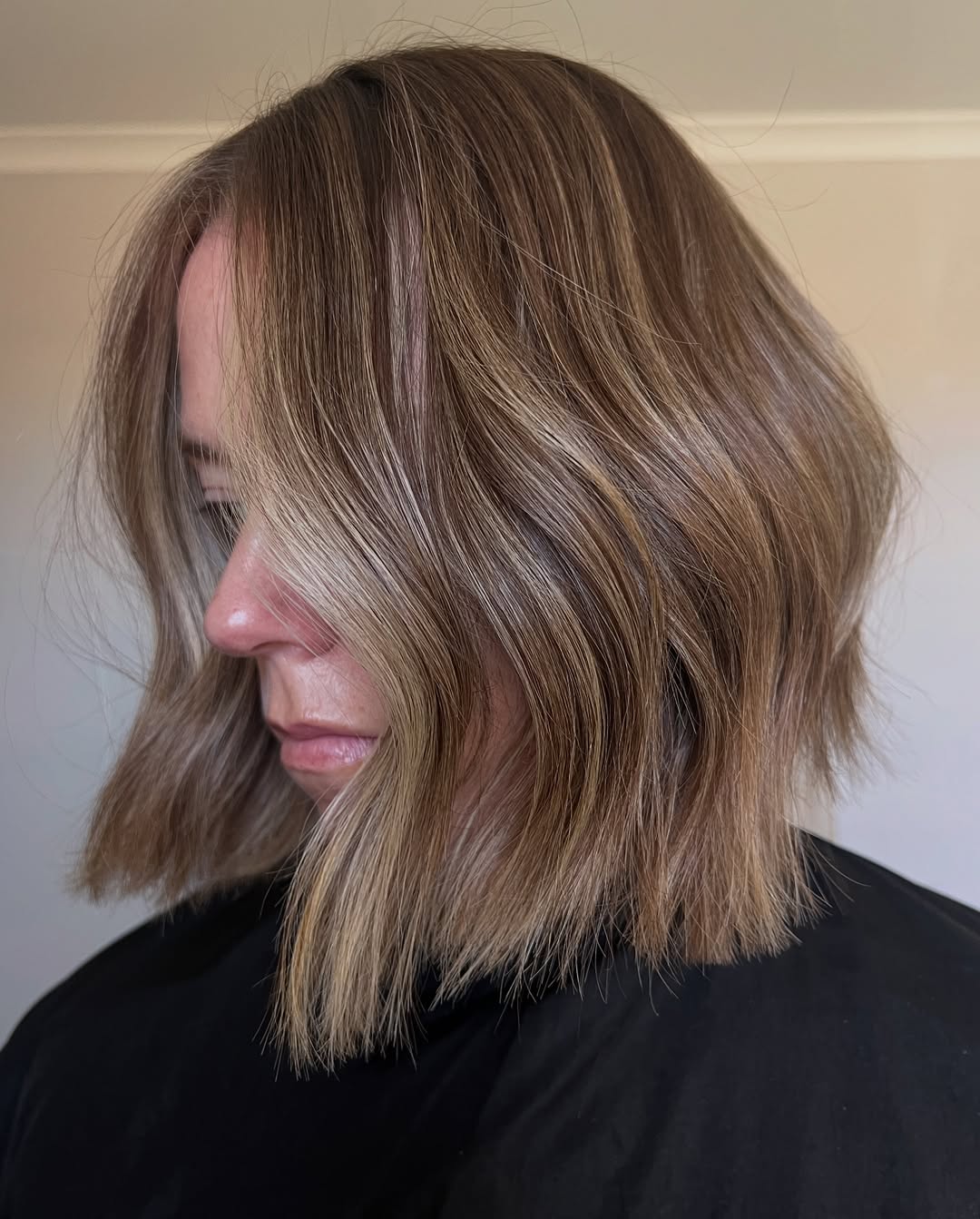 Adding waves to the lob with ash balayage can make a huge difference to the overall effect of the hairstyle. The subtle kink here adds a new dimension to the hair. It’s also really easy to do at home – all you need is a curling tong or a straightener.