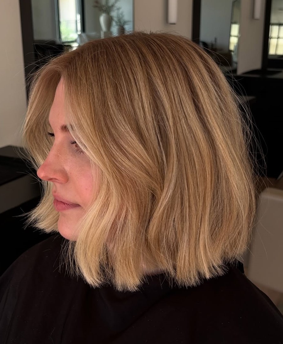 Dirty blonde locks and relaxed waves give this lob an effortless feel. Steer away from heavy layers to show off the thickness of your hair but go for shaggy highlighted ends to get a bright modern look. Keep your waves tousled to convey that beach babe charm.