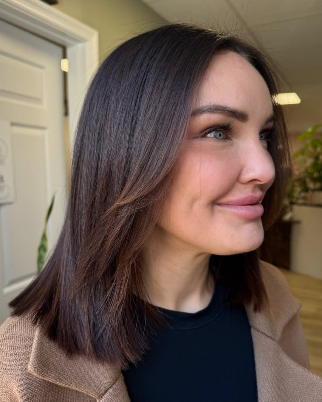 Looking for hairdos to flatter your straight hair? Then this shoulder-length cut may be what you need! Complement your symmetrical facial features with the middle part style and enjoy the elegance of the new trim.