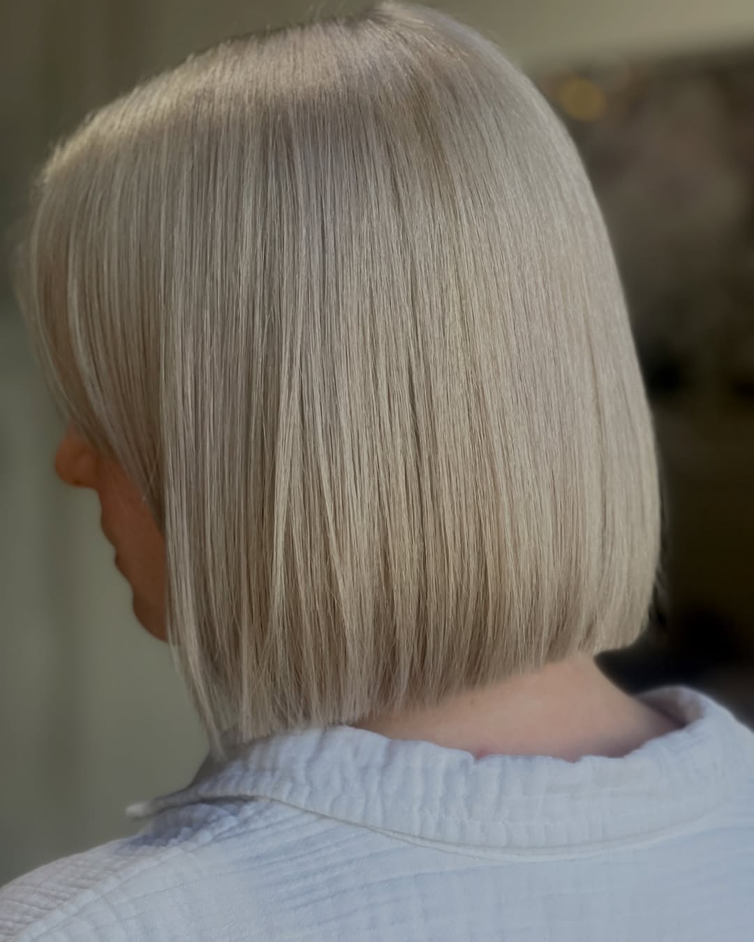 A chin-length crop with a barely visible wave elongates the jawline and makes the neck look longer and more elegant. The most important feature of the style is its versatility as it can complement a wide variety of face shapes and hair types.