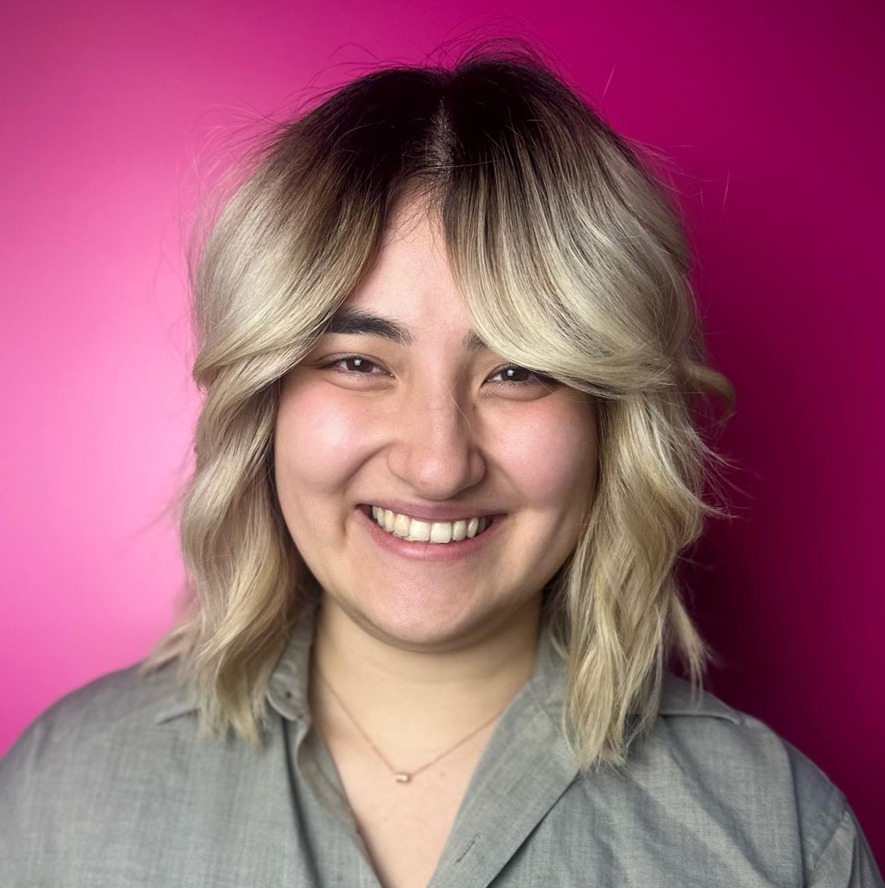 Choppy cuts are the epitome of cool-girl hair. A platinum blonde base with seemingly haphazard layers feels edgy and modern, and those shorter pieces up front allow for a few shaggy, in-your-face bangs moments.