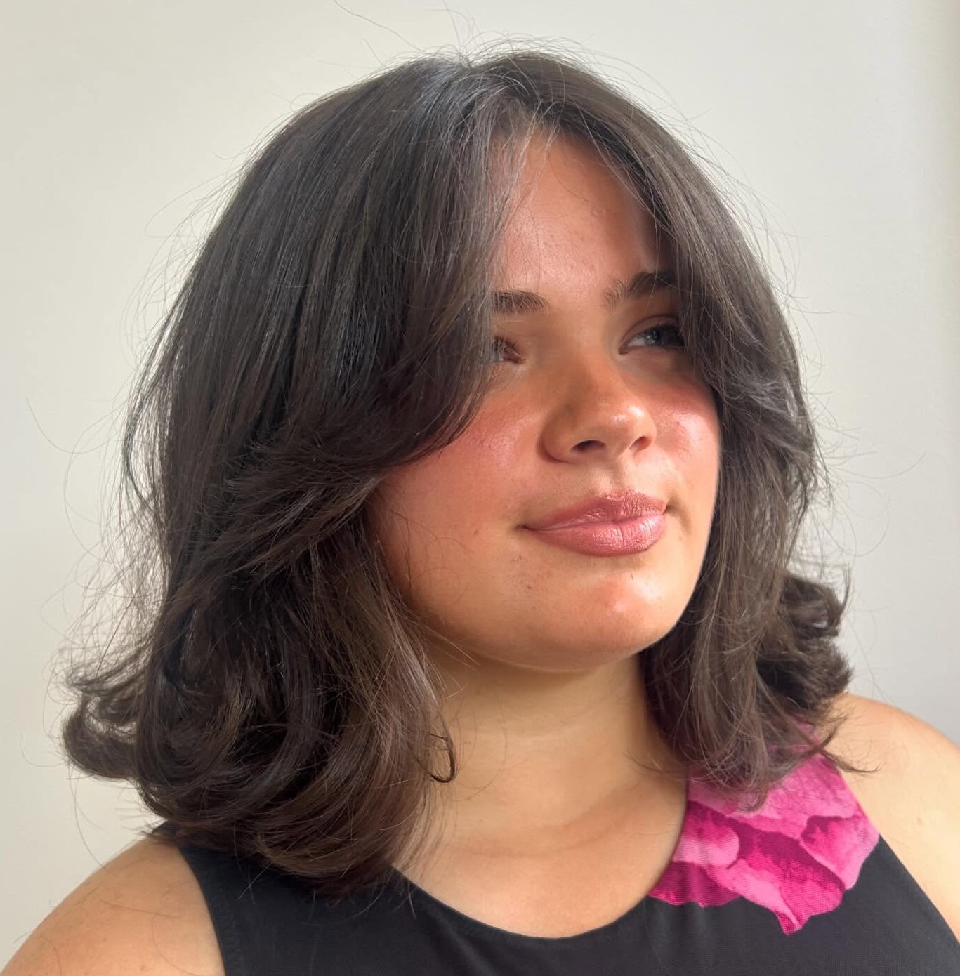 One way to visually soften the fullness of your cheeks and make your face look slimmer is to add volume. This becomes possible thanks to soft layers that inject exceptional lightness into your mane, even if you have fine hair.