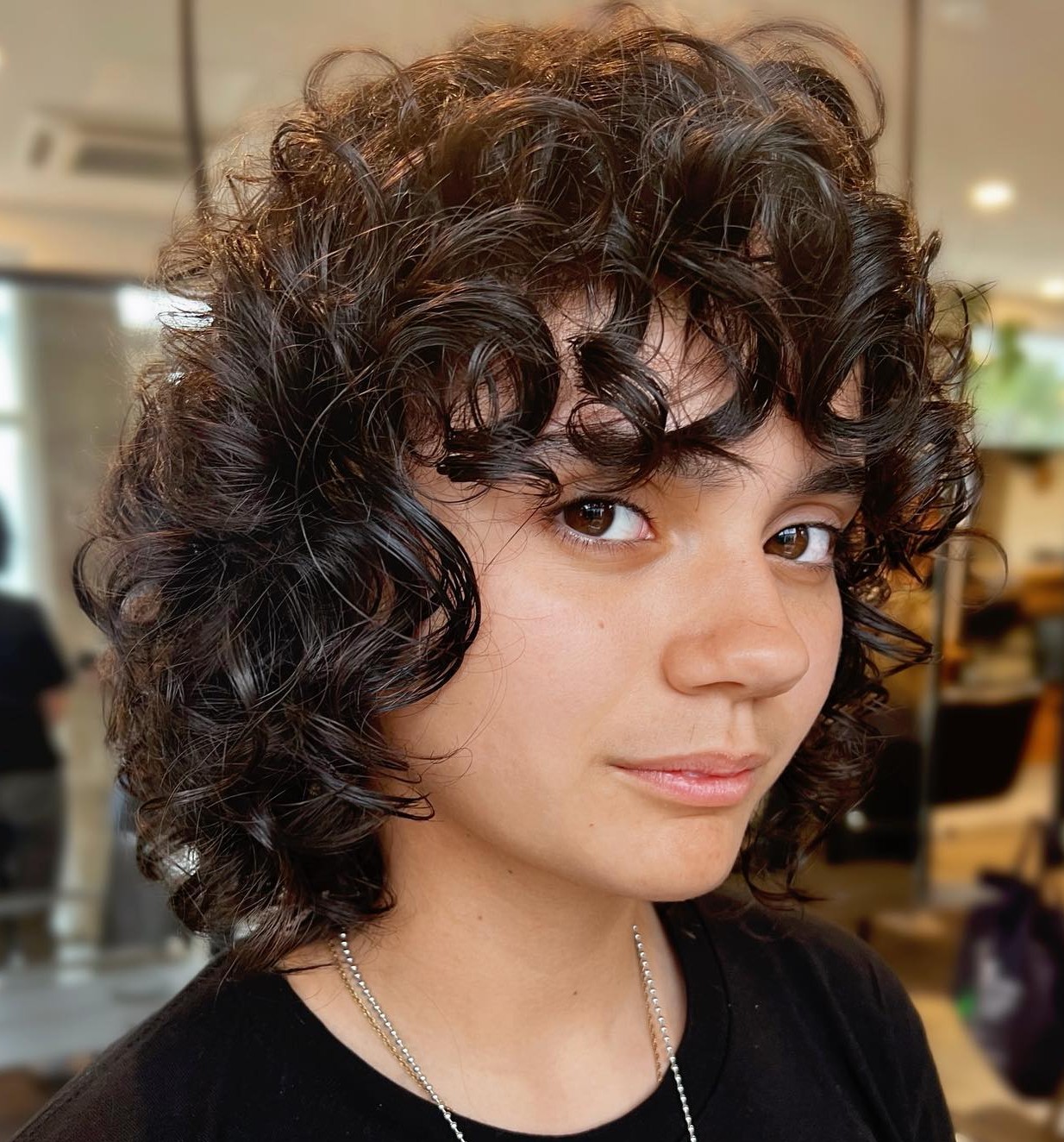 It is no secret that large rollers can provide shorter cuts with the needed volume and fancy curly texture. While the idea may seem dated, you can put a modern spin on it by adding sultry side bangs. Sweet caramel highlights add dimension and keep the style from feeling too full.