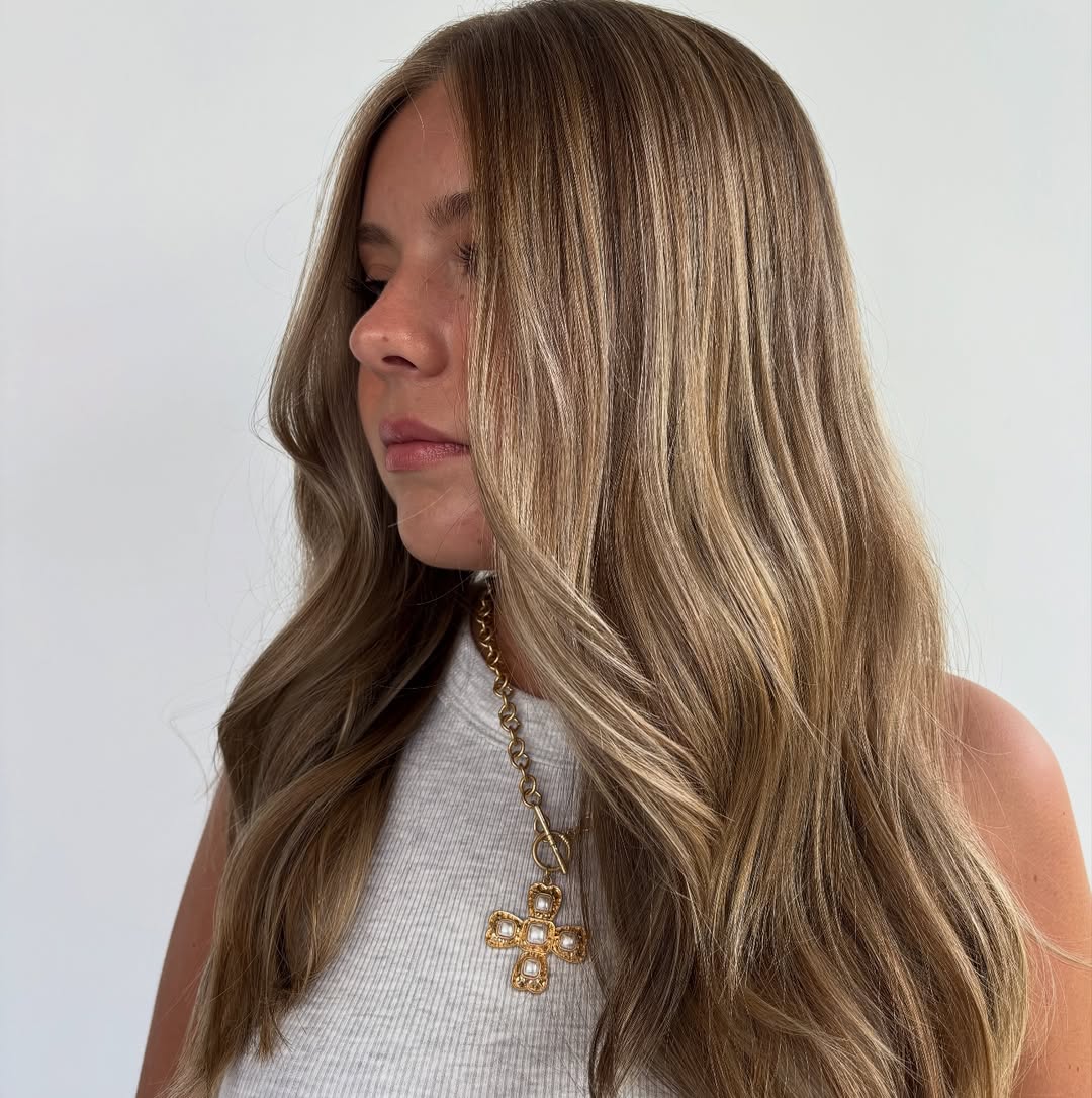 Opting for a dark blonde base color with lighter highlights is a fantastic choice for achieving a bronde look with a light and airy feel. While this combination creates a beautiful depth and dimension in your hair, layering gives extra texture and movement to your locks.