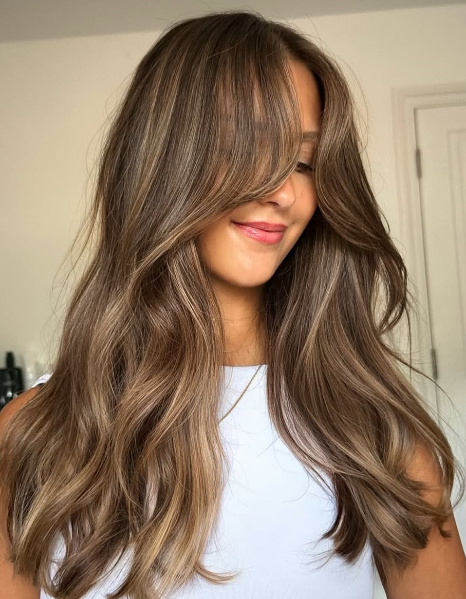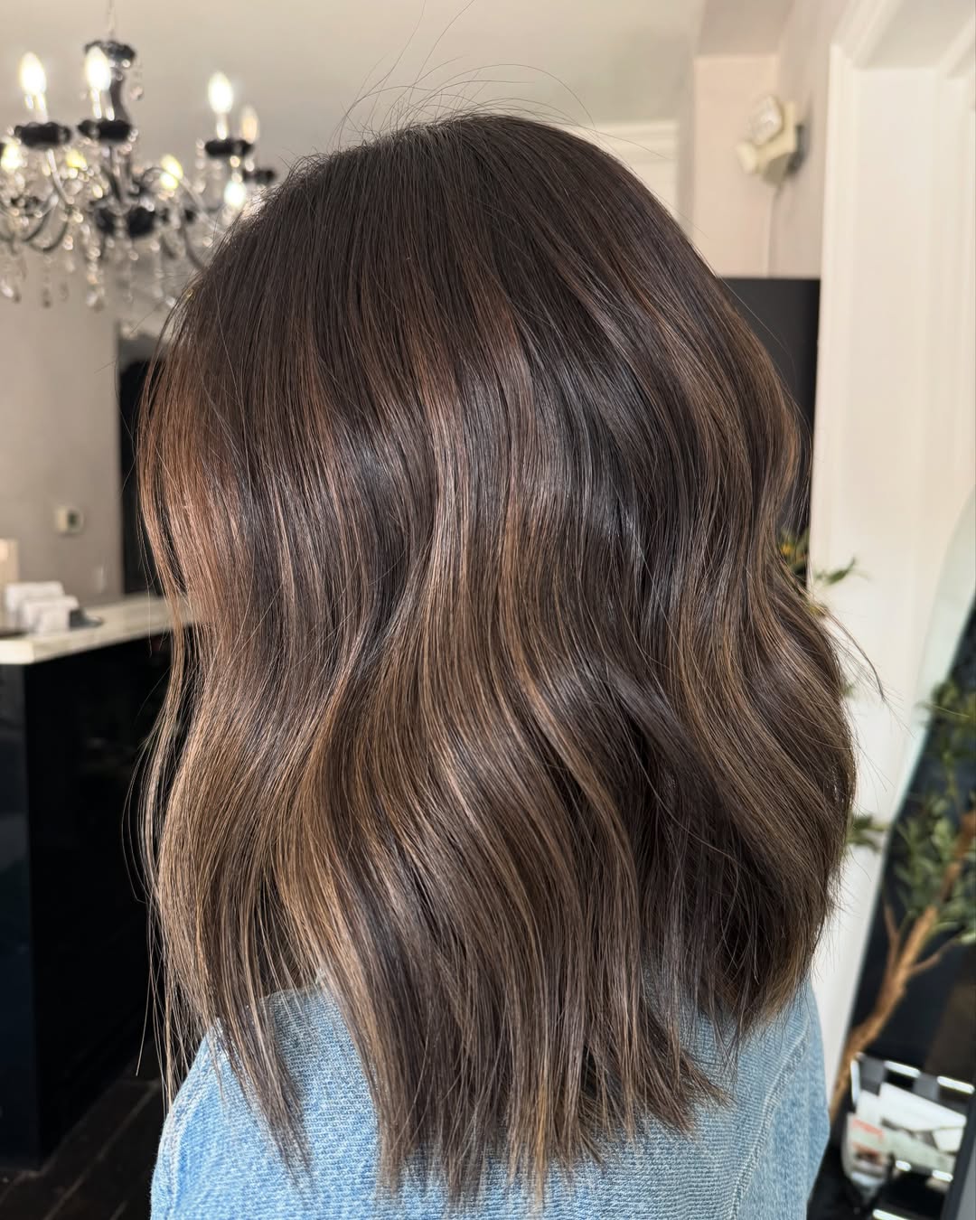 The charm of this hair color is in its versatility. Whether you prefer a few face-framing highlights or a more distributed approach, the addition of lighter hues to brown hair can enhance your hair’s texture and create a beautiful contrast that complements your skin tone.