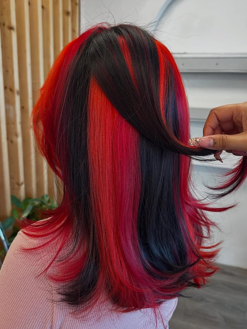 Let your imagination run wild with bold thick highlights, let it play to find the perfect color combinations to match your haircut and general style. With self-expressive hair, heads will surely turn!