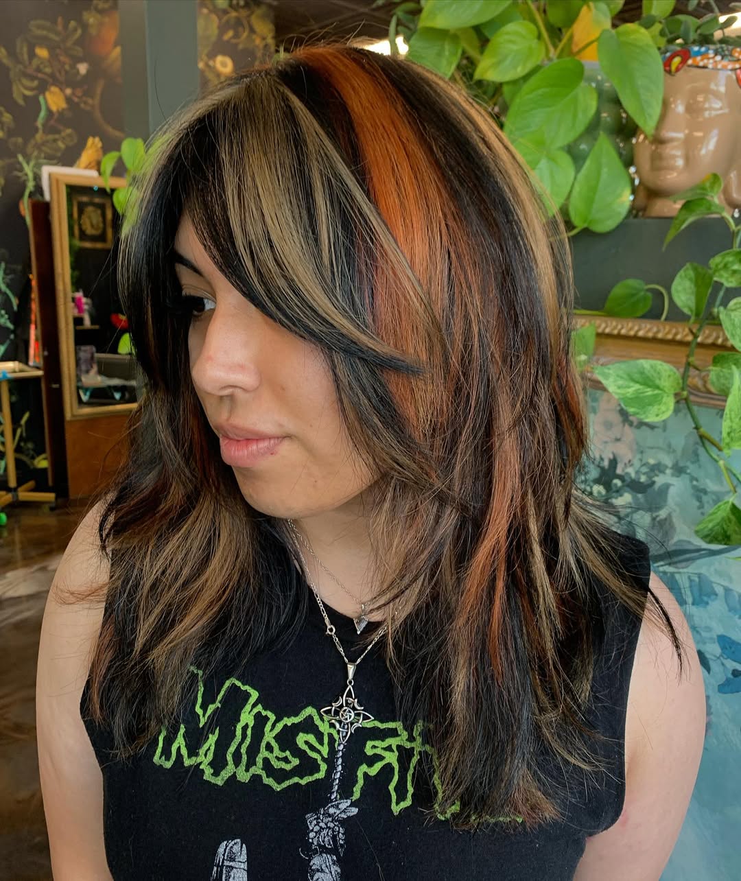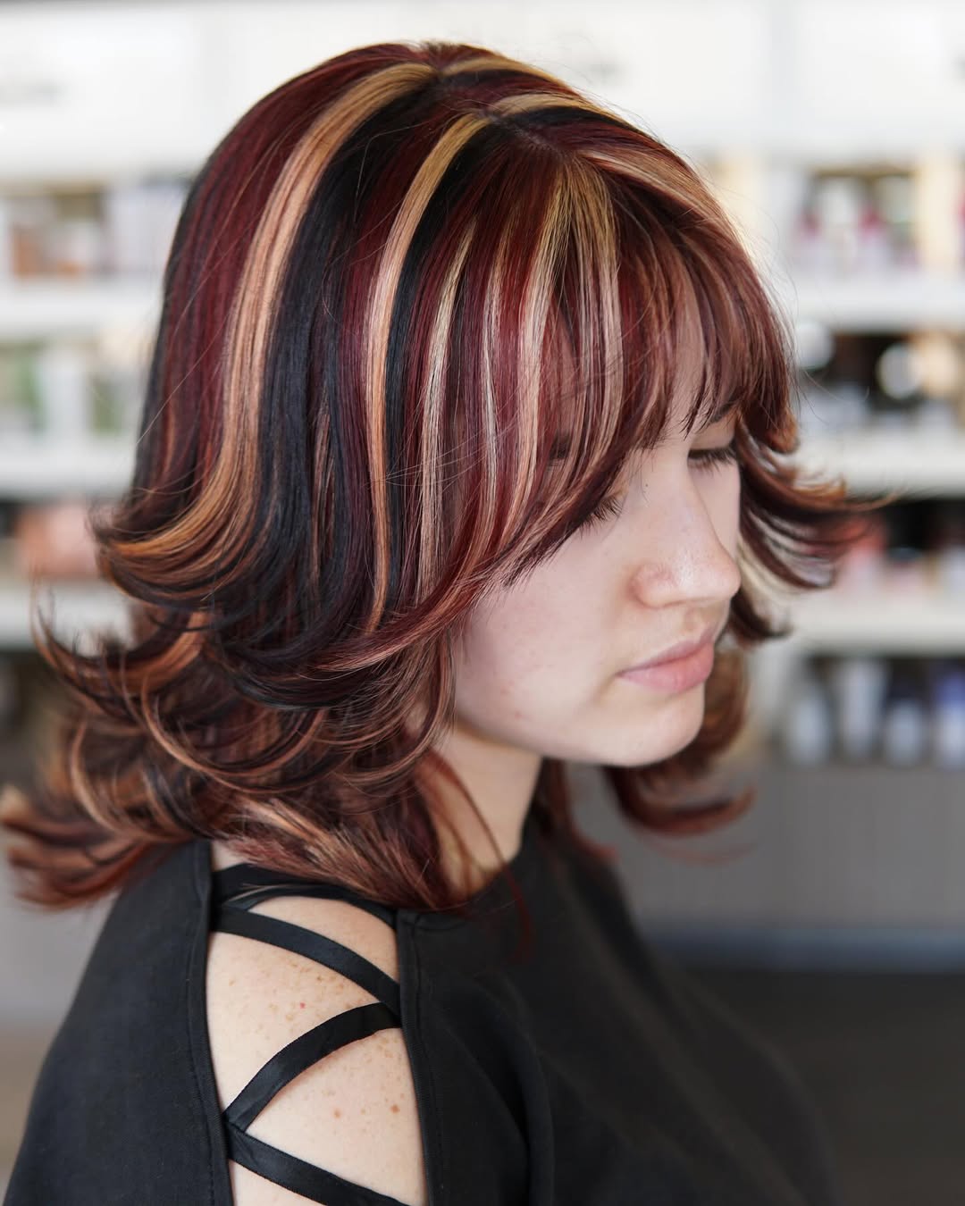 Copper hair color is that one color that never gets out of trend. If having a single copper shade isn’t your preference, consider experimenting with rich, strawberry blonde-toned vivid highlights. Ideal for those who are looking to elevate a copper shade but also their style.