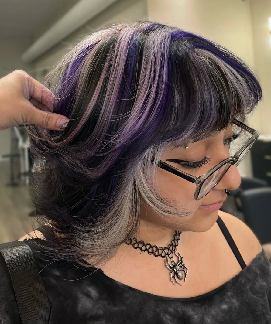 Reviving your cut can be as simple as adding a touch of color strategically. Opt for a defined color placement and a contrasting hue to illuminate dark hair. In addition, it pairs well with majority of skin tones.