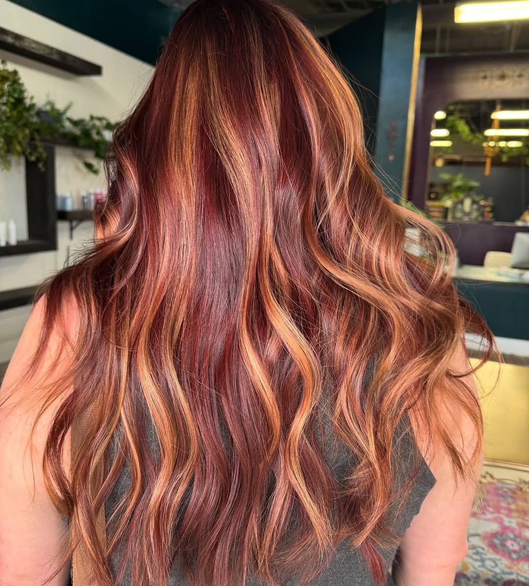 Copper hair color is that one color that never gets out of trend. If having a single copper shade isn’t your preference, consider experimenting with rich, strawberry blonde-toned vivid highlights. Ideal for those who are looking to elevate a copper shade but also their style.