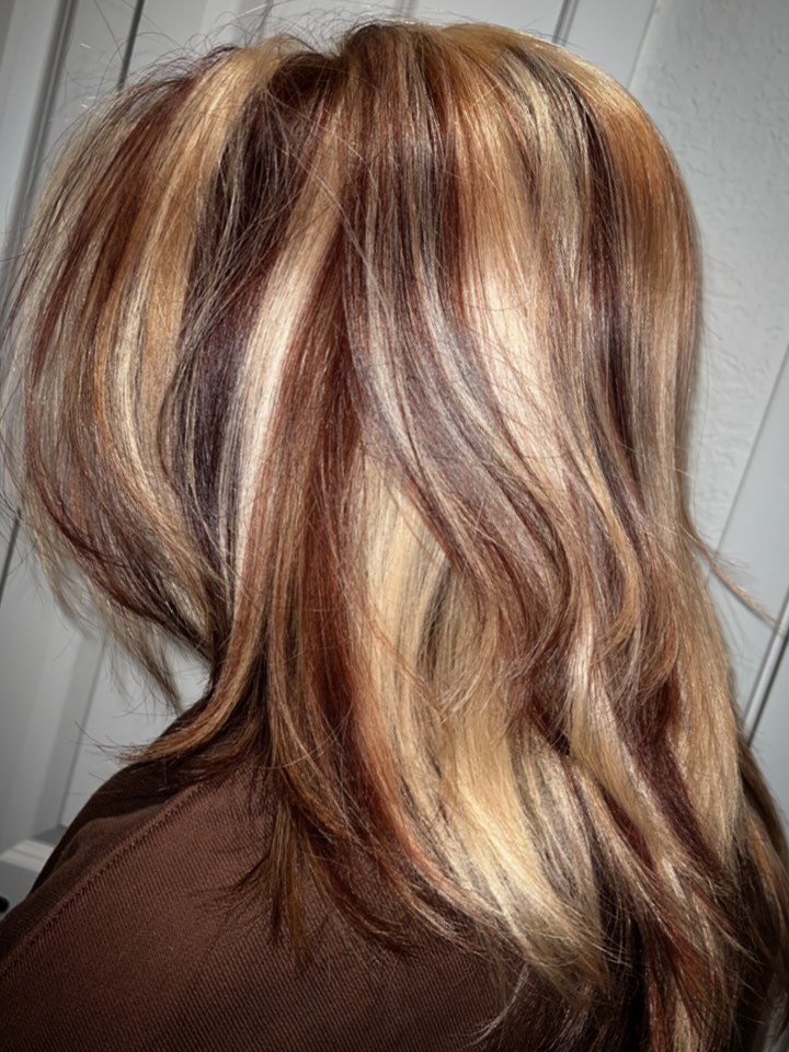 Bring the richness of your dazzling auburn hair out with these amazing wide strawberry blonde highlights. No matter your style, this shade combo is sure to elevate the look, bringing a fiery and fabulous flair to everyone!