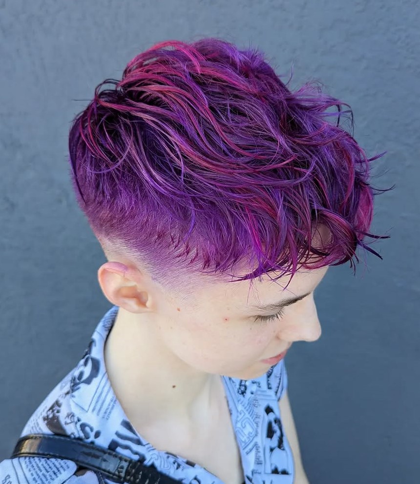 Forget fifty shades of gray and instead go for fifty shades of purple! By combining multiple violet hues, you can transform a standard layered pixie cut into something very interesting and chic.