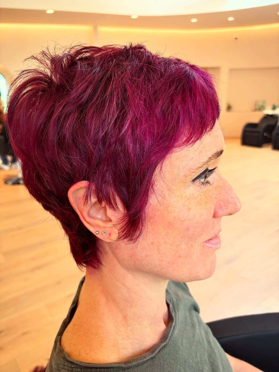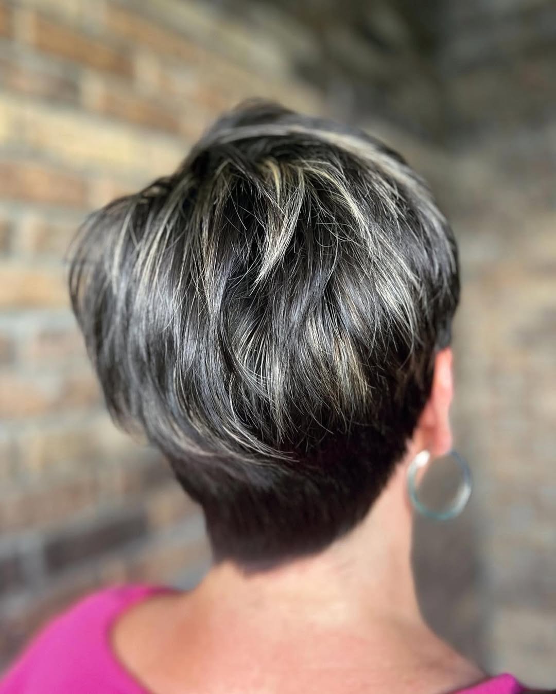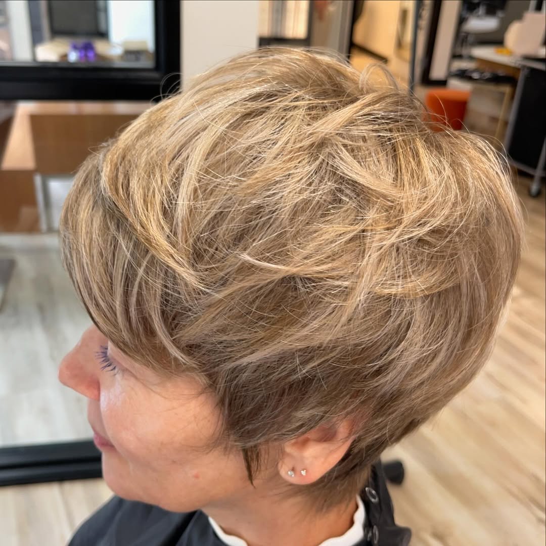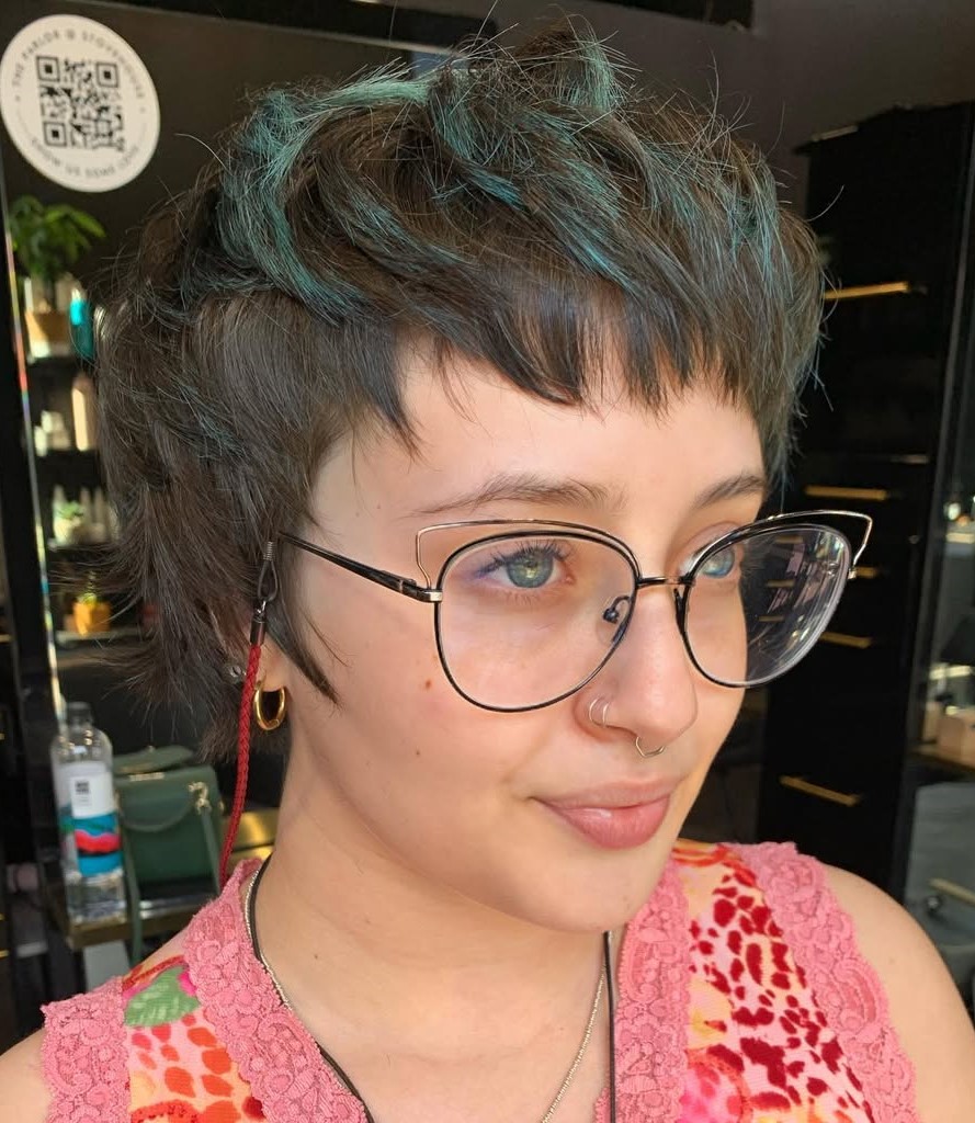 Sometimes, it’s best to stick with the tried and true styles. A textured ash brown pixie with wispy bangs is a classic look that can work for any occasion and in any setting.