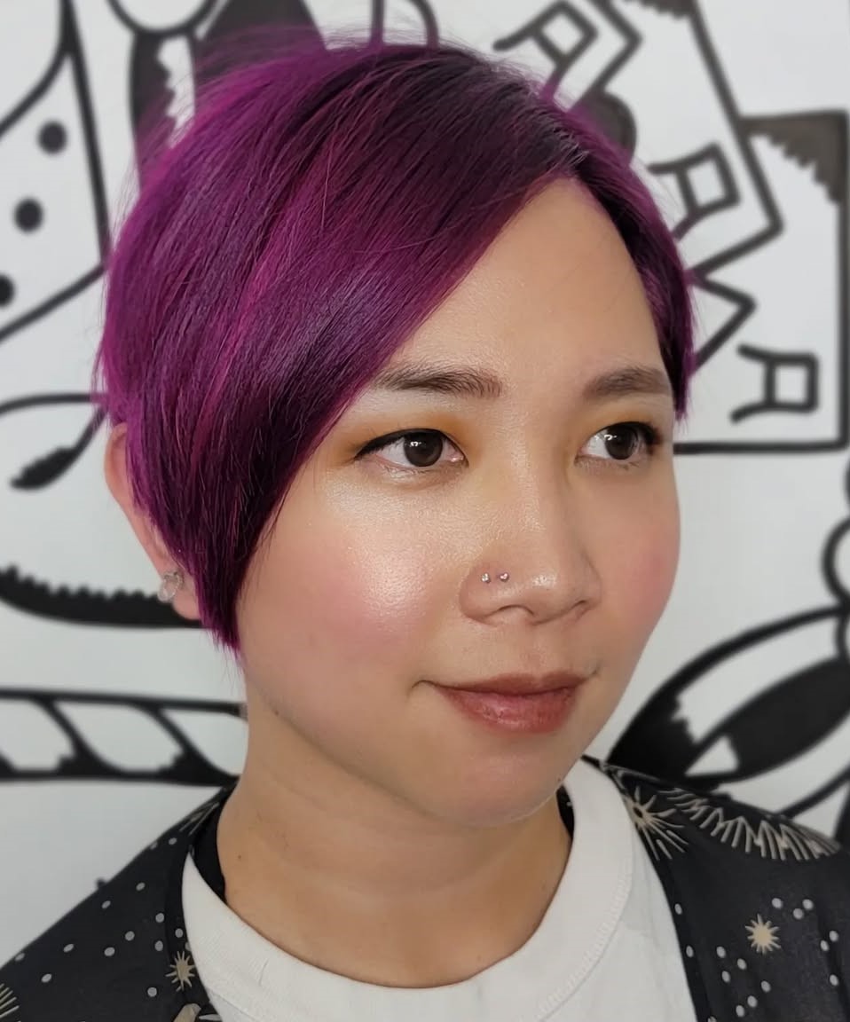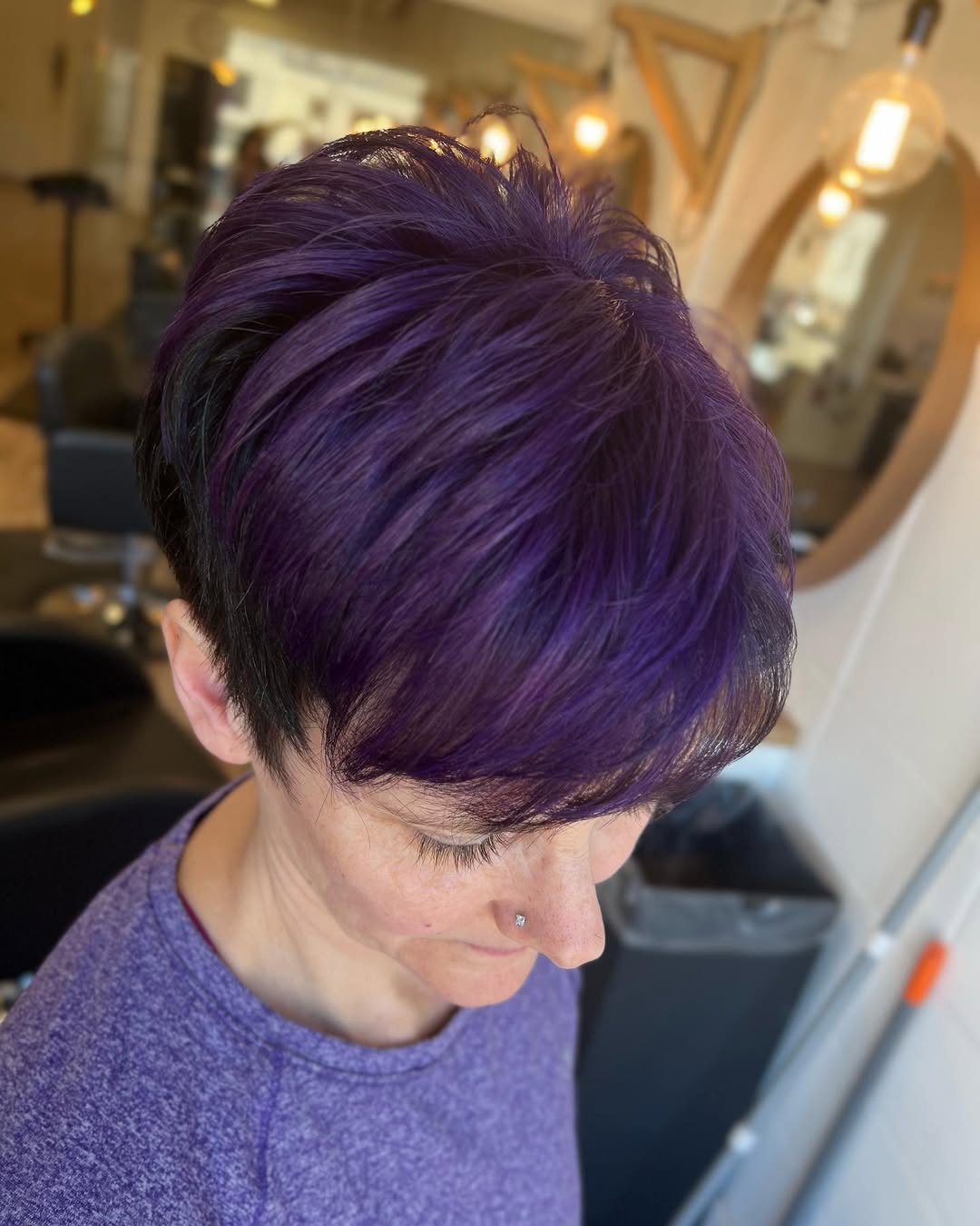 Forget fifty shades of gray and instead go for fifty shades of purple! By combining multiple violet hues, you can transform a standard layered pixie cut into something very interesting and chic.