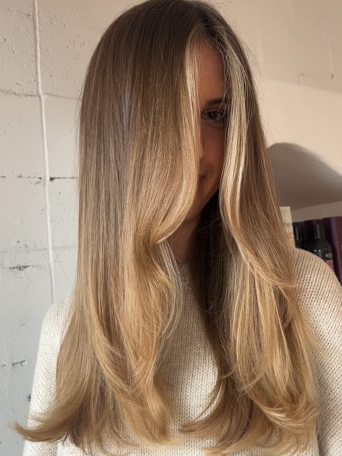One of the best things about having super-straight hair is that it naturally commands attention. The bright blonde highlights around the face ensure the eye will be drawn directly to your face and that lovely smile.