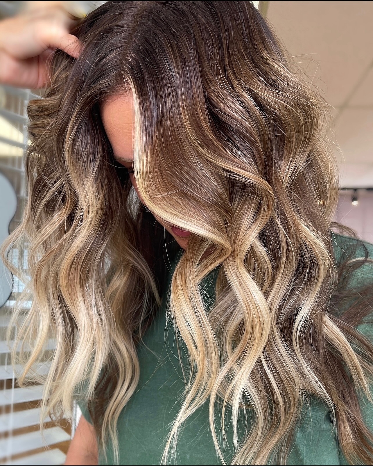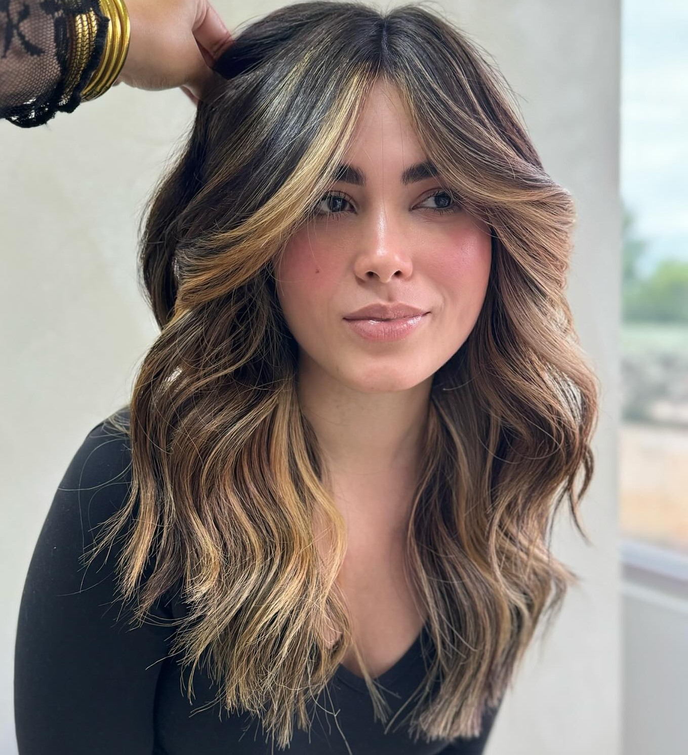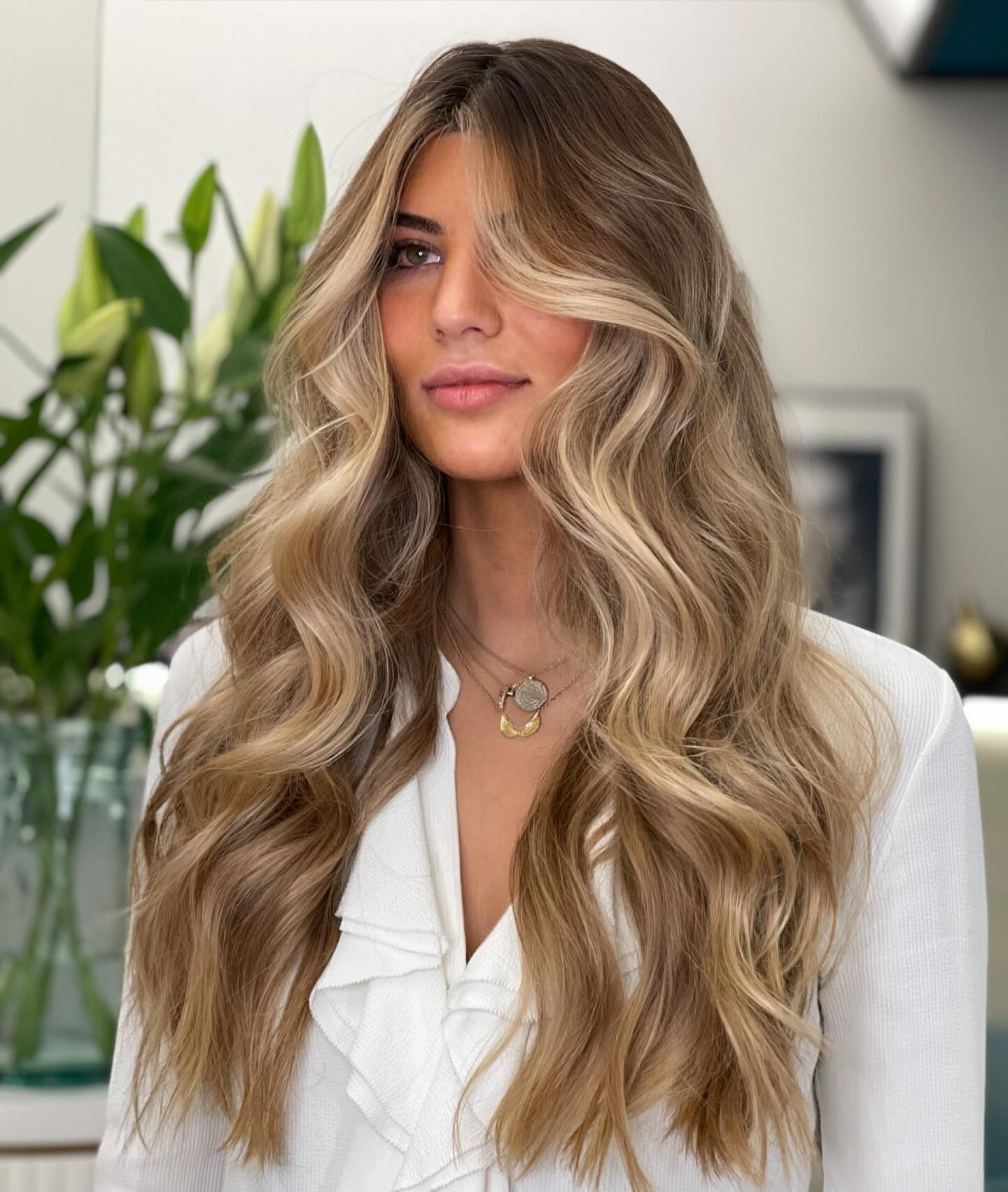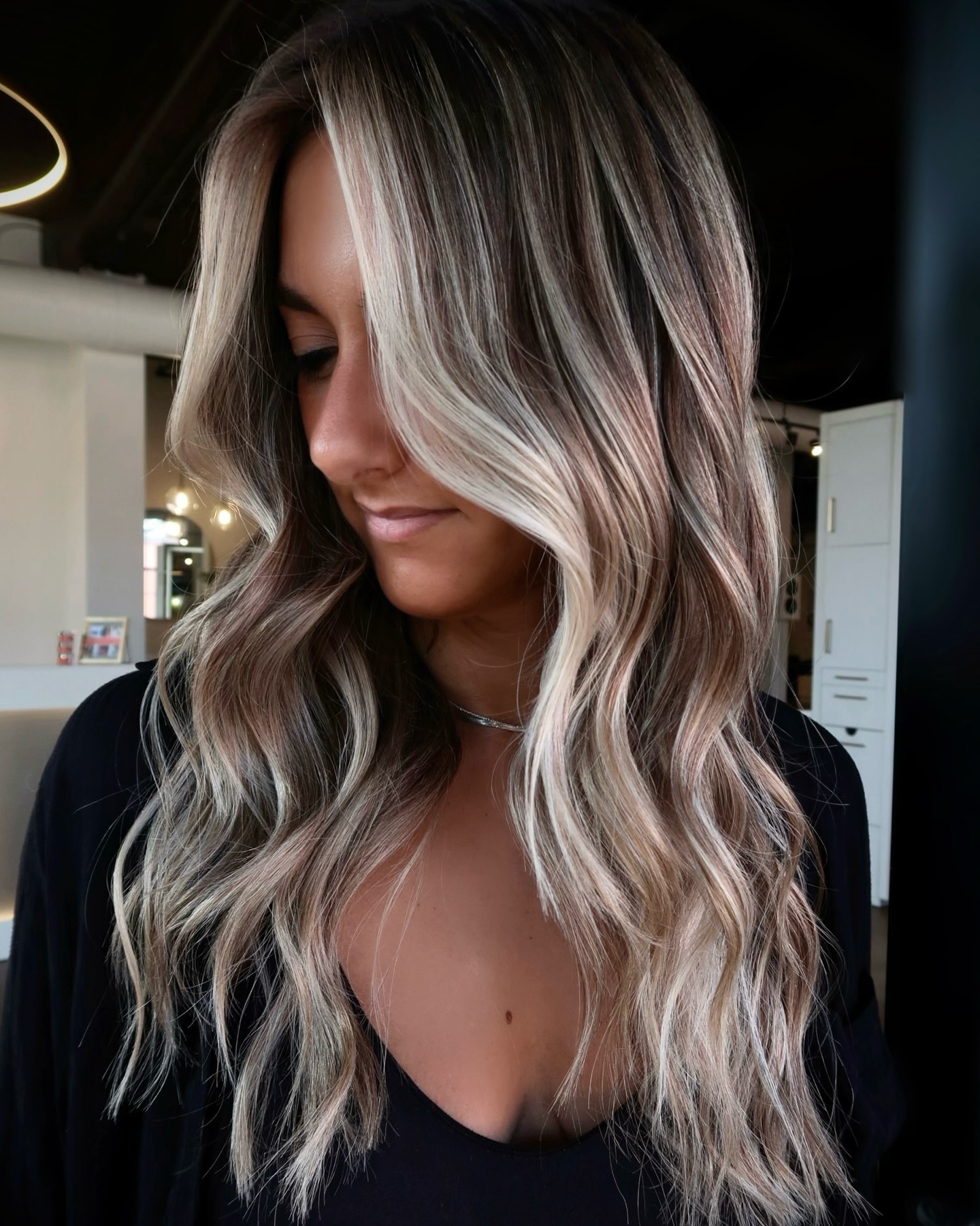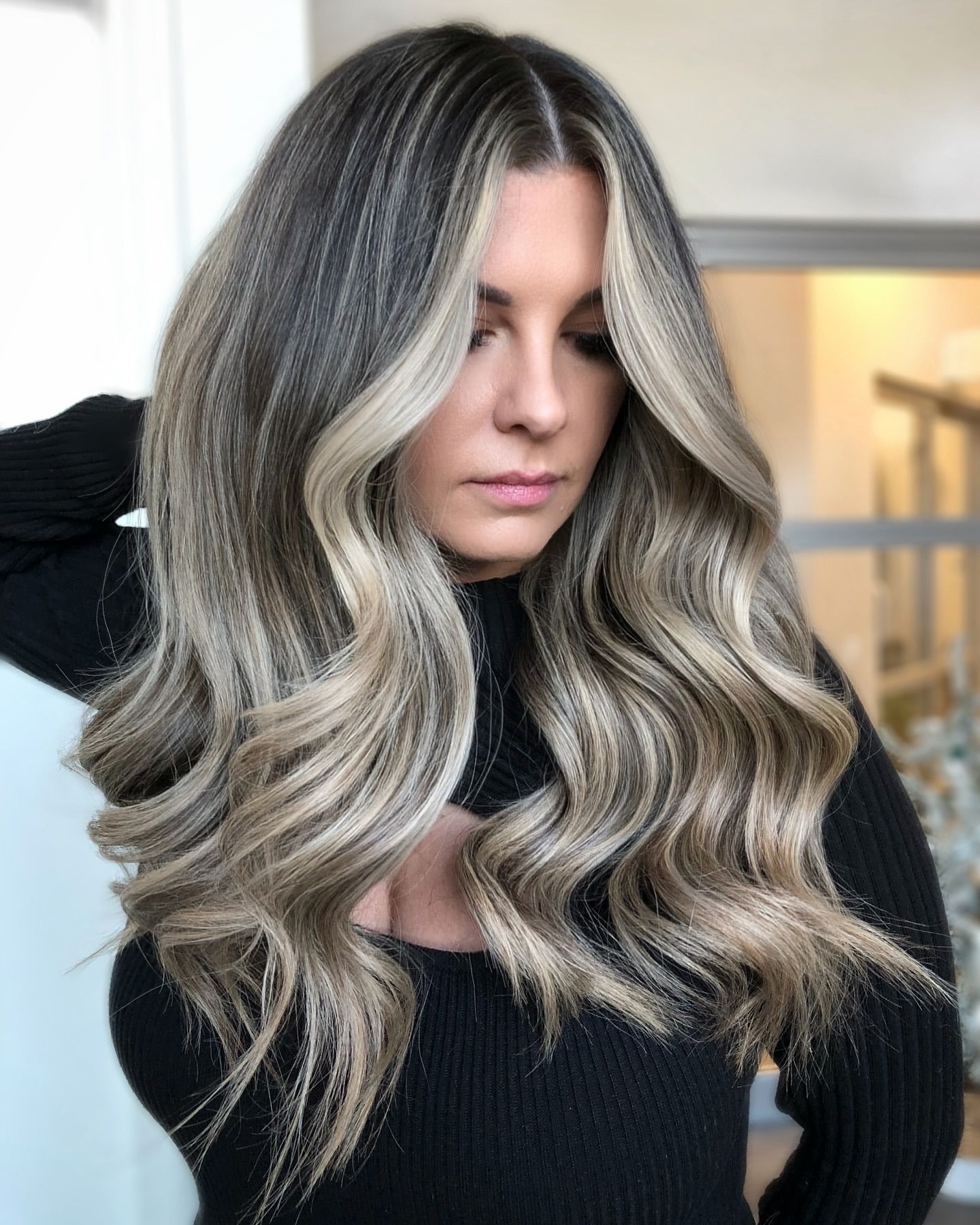The strategic placement of highlighting foils contributes to a more natural distribution of lightened pieces, which does wonders for outlining the face. Long, carefree waves are luxurious and feminine.