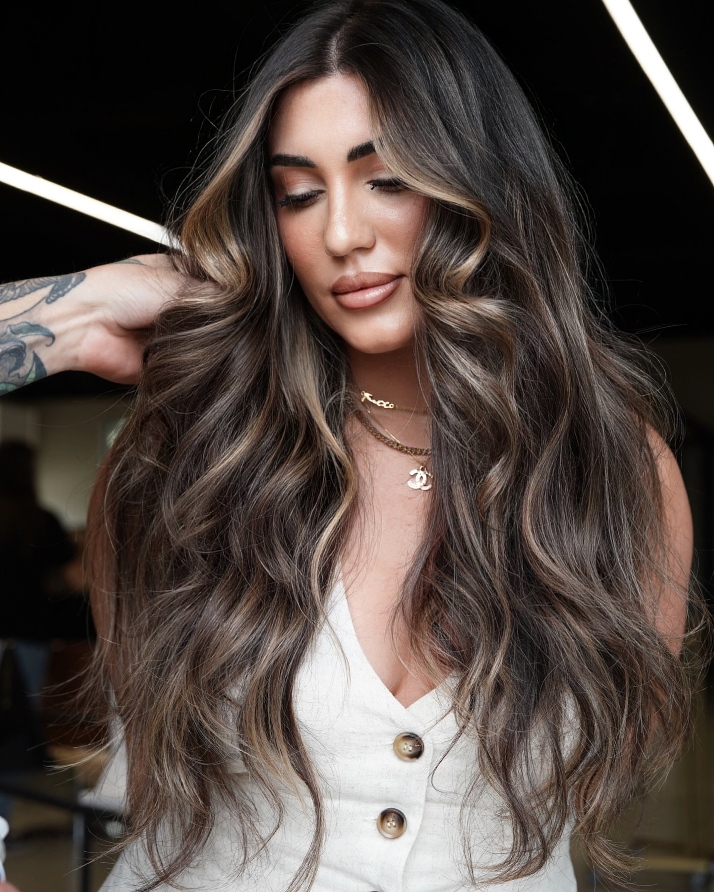 The strategic placement of highlighting foils contributes to a more natural distribution of lightened pieces, which does wonders for outlining the face. Long, carefree waves are luxurious and feminine.