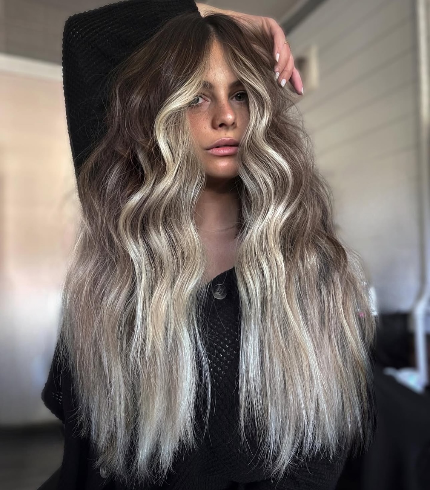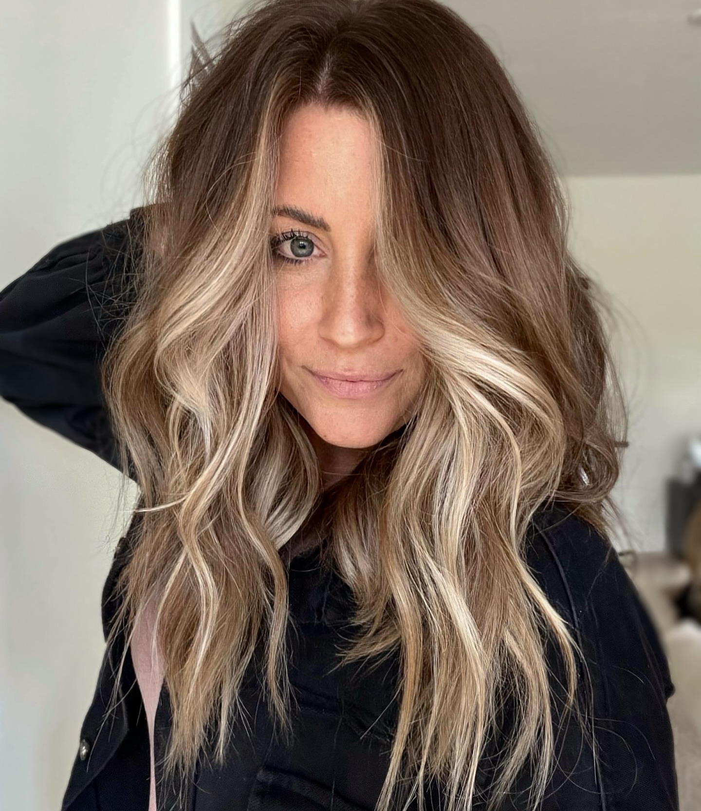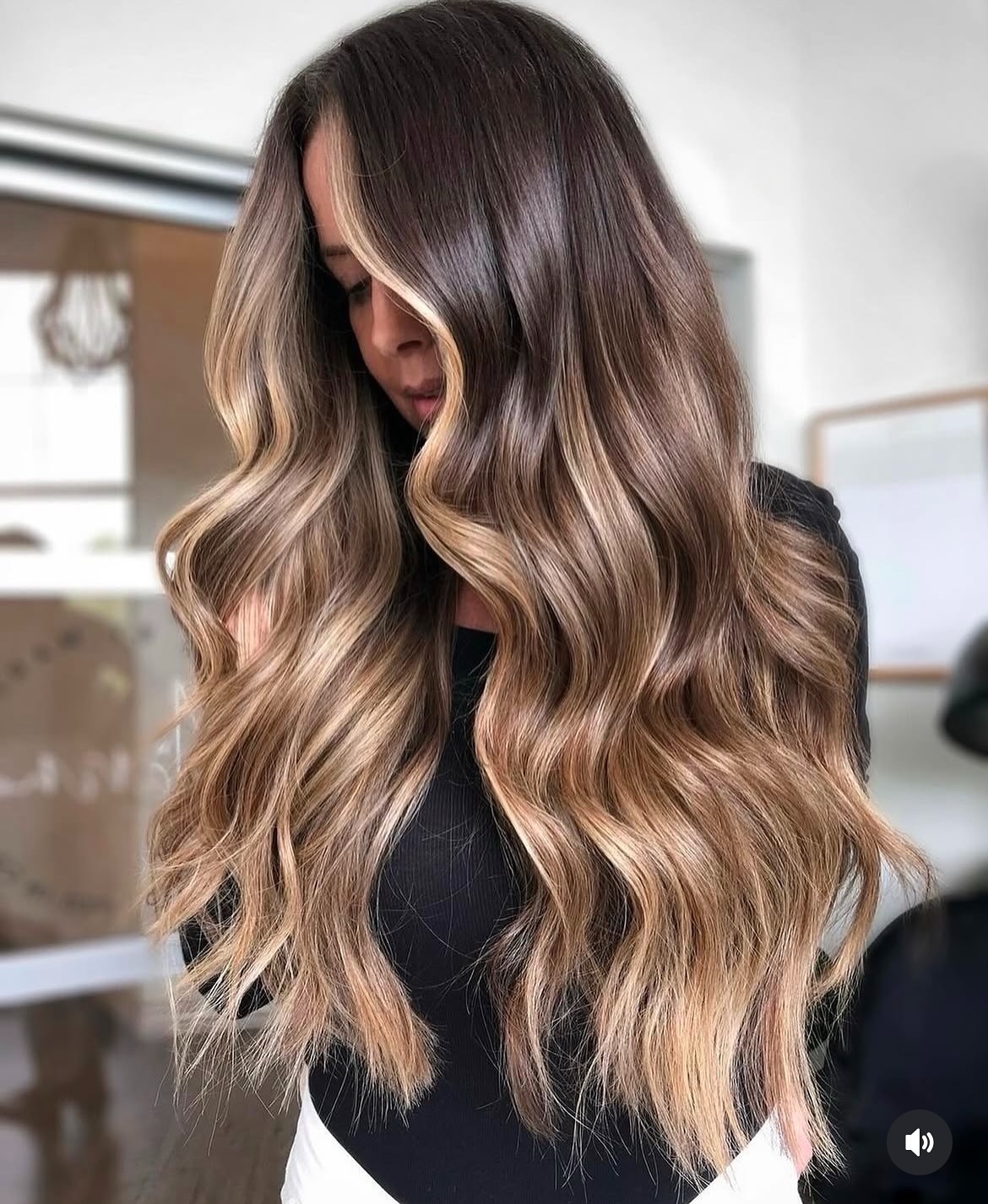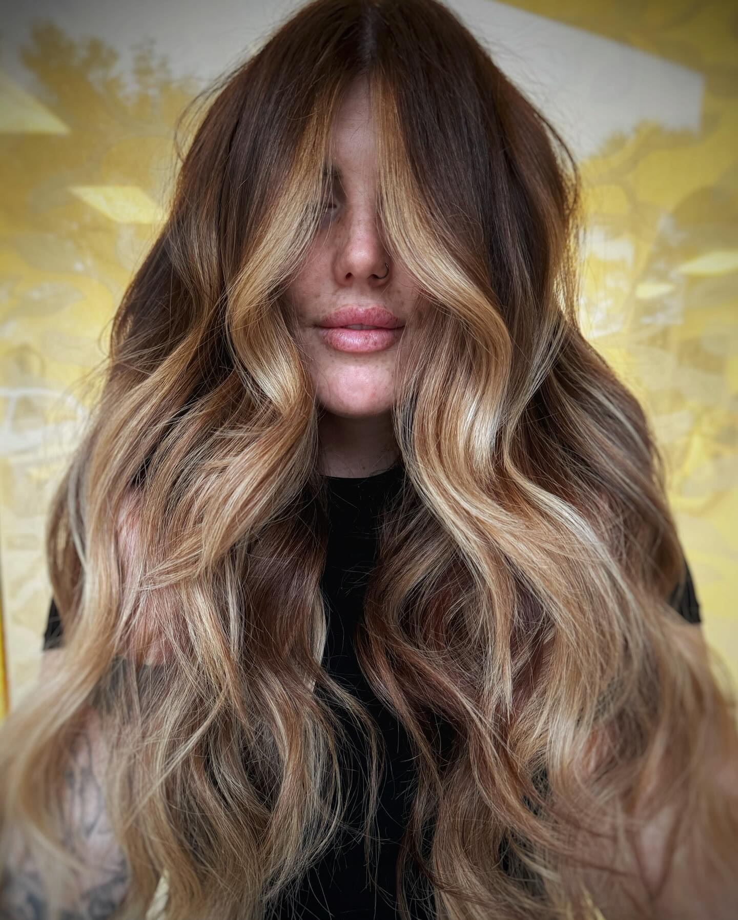 The strategic placement of highlighting foils contributes to a more natural distribution of lightened pieces, which does wonders for outlining the face. Long, carefree waves are luxurious and feminine.