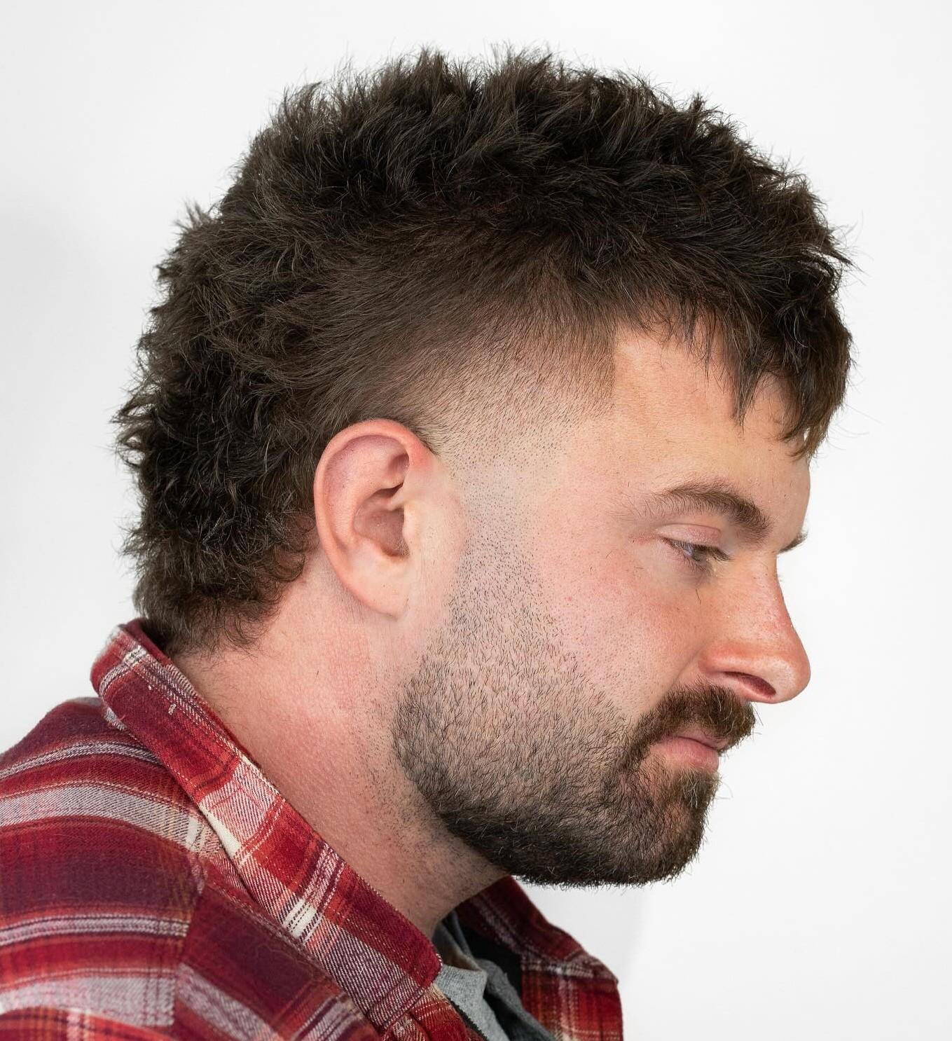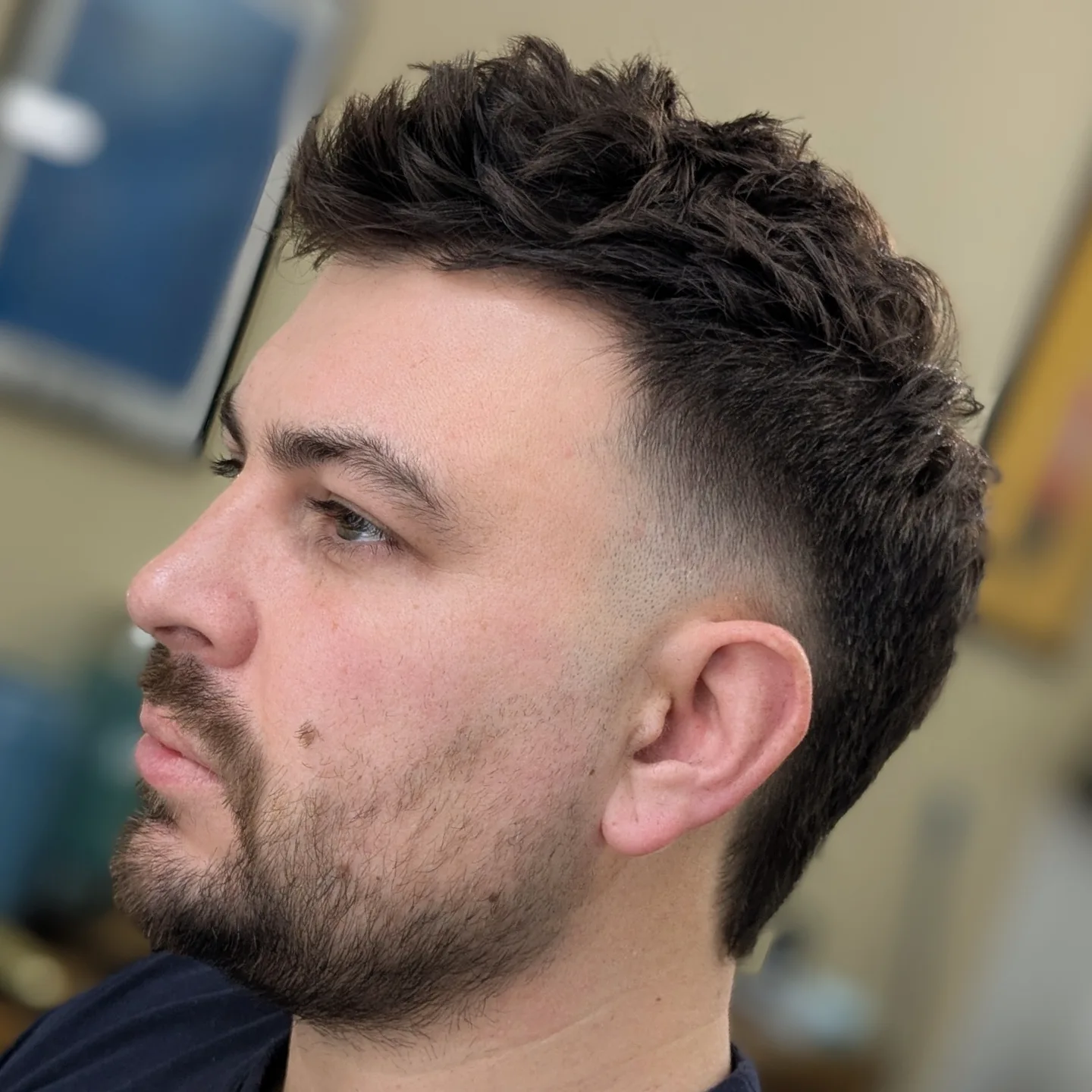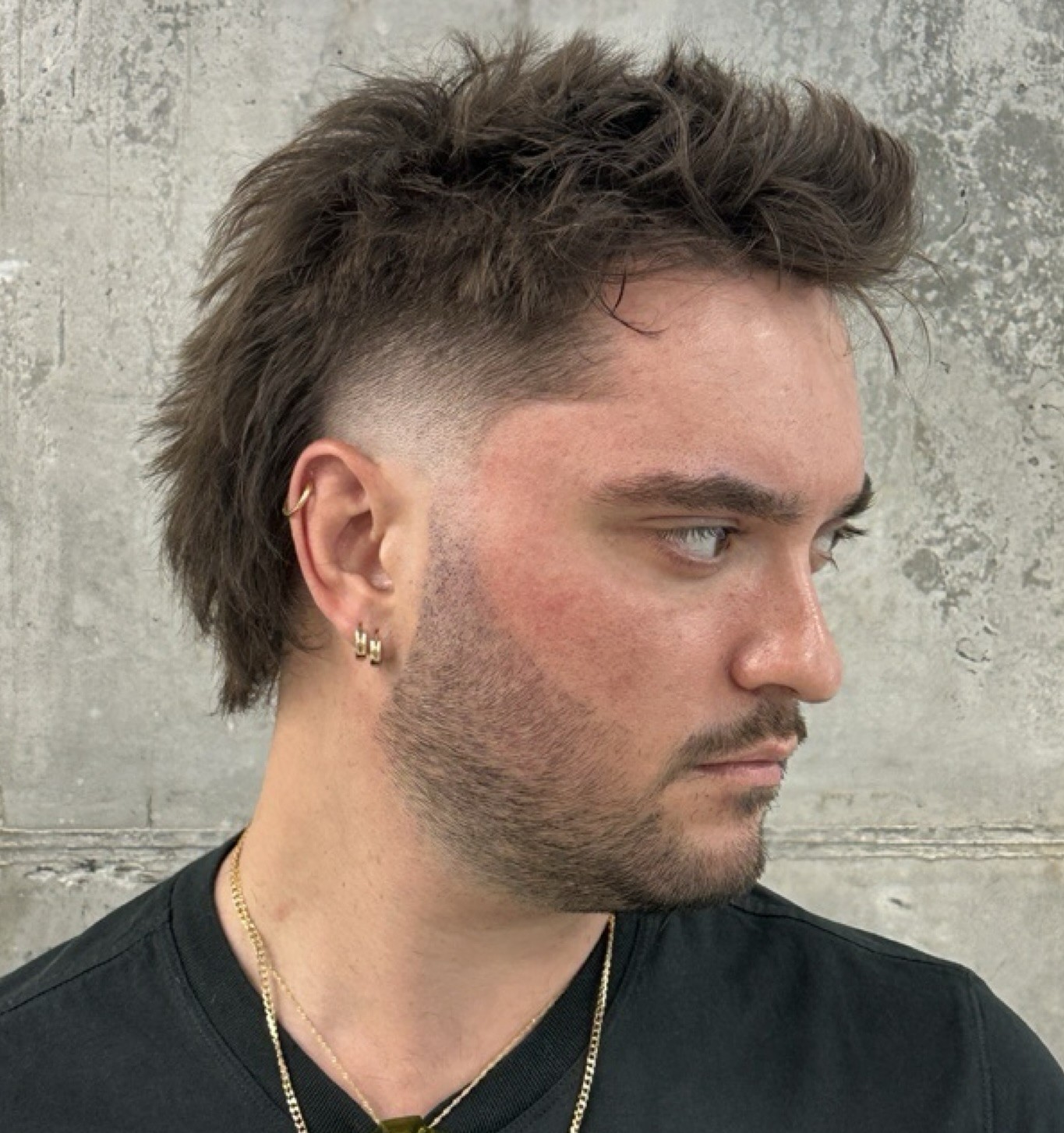 One of the essential features of a Mohawk is its pointy top that’s usually achieved by spiking with a product. In this picture, you see a crisp pointy top and the sides which are left pretty full.
