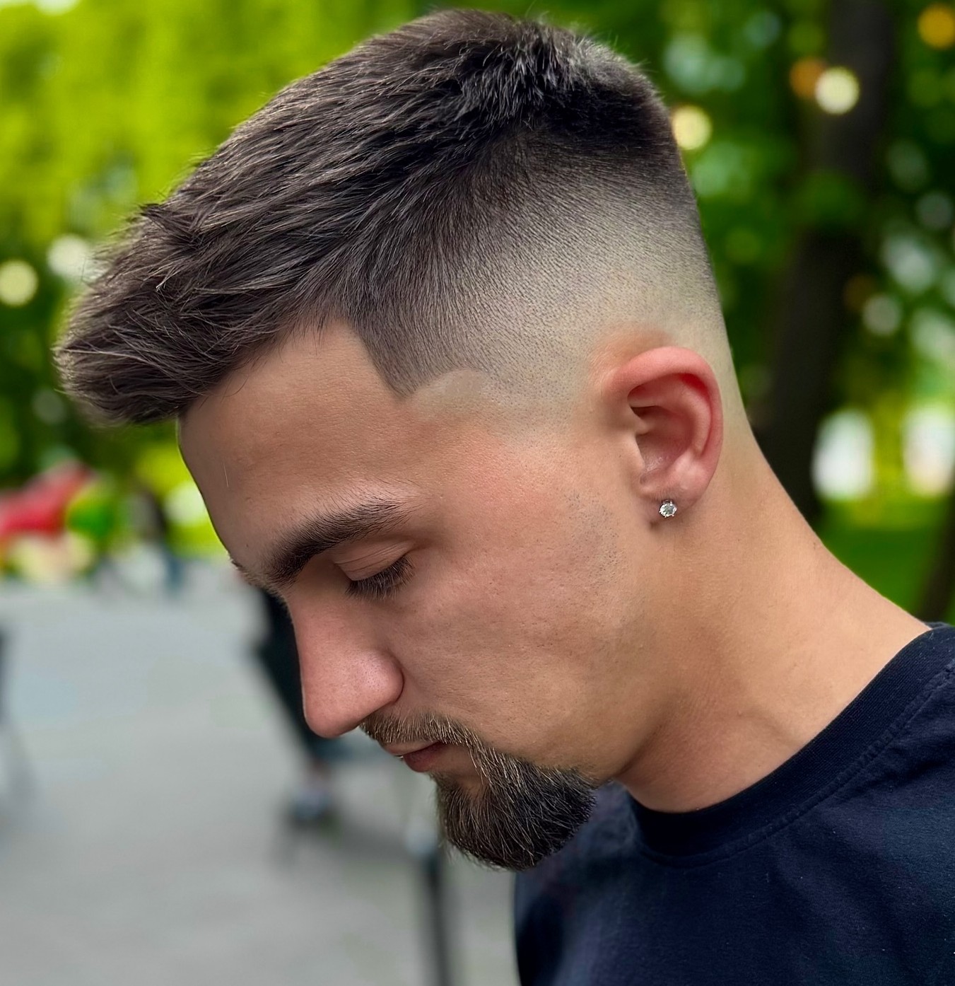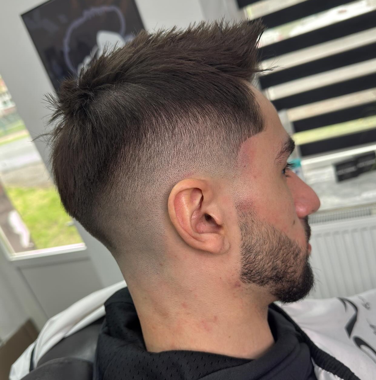 There are so many style options available that suit a variety of tastes. In this picture, there is a bolder skin fade haircut on display, as the shaved sides and spiky top are pretty expressive but not too over the top.