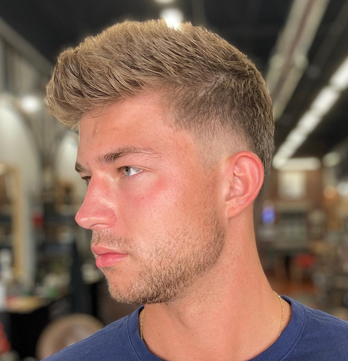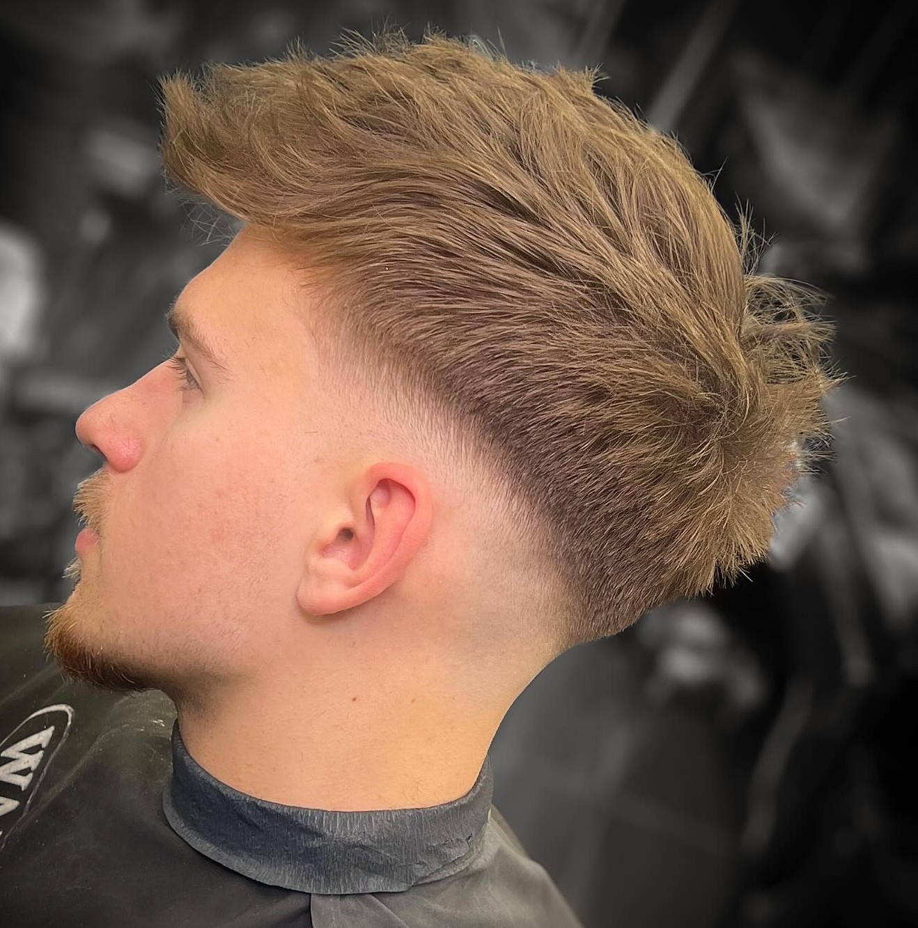 Every haircut begins somewhere and as you can see in this picture, a beginner haircut can also be pretty stylish. The back and sides are completely shaved, while a small portion of hair on top is blended perfectly with the skin fade.
