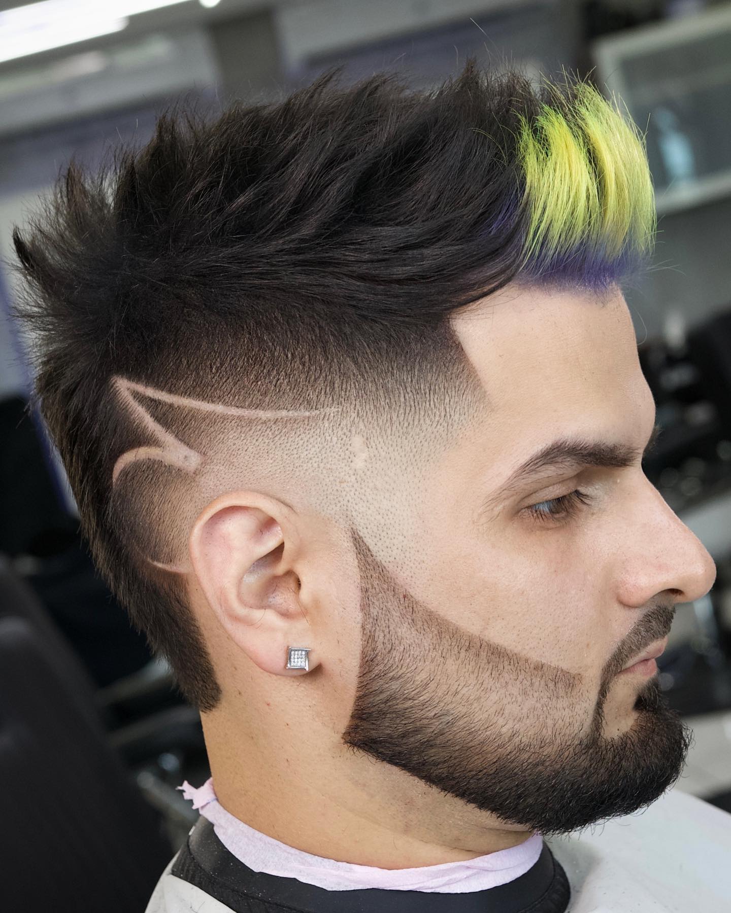 Taking cues from the high top fade, this haircut features totally shaved sides with a lot of spiky texture on top and awesome square hairline. The final result is a haircut that is both retro and modern with a little bit of edge.