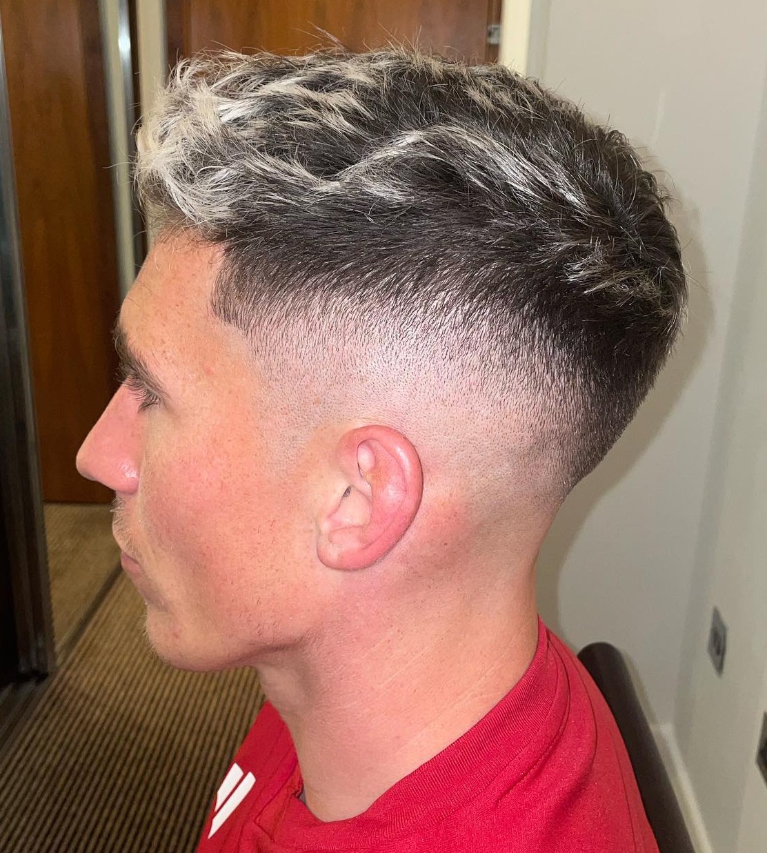 One reccurring theme in these pictures is just how many men love to combine a buzz cut with high-top haircuts. This one features a shorter version of the popular military haircut.
