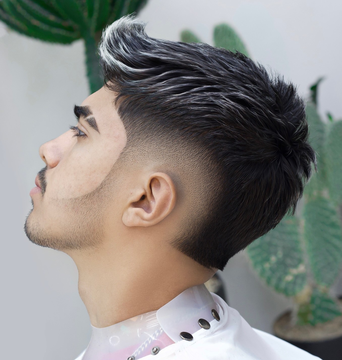 The way your haircut is parted makes all the difference in how it looks. This style is parted deeply on each side and then faded, while the top is more understated and simply spiked up.