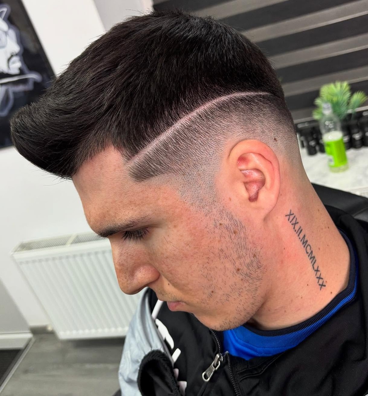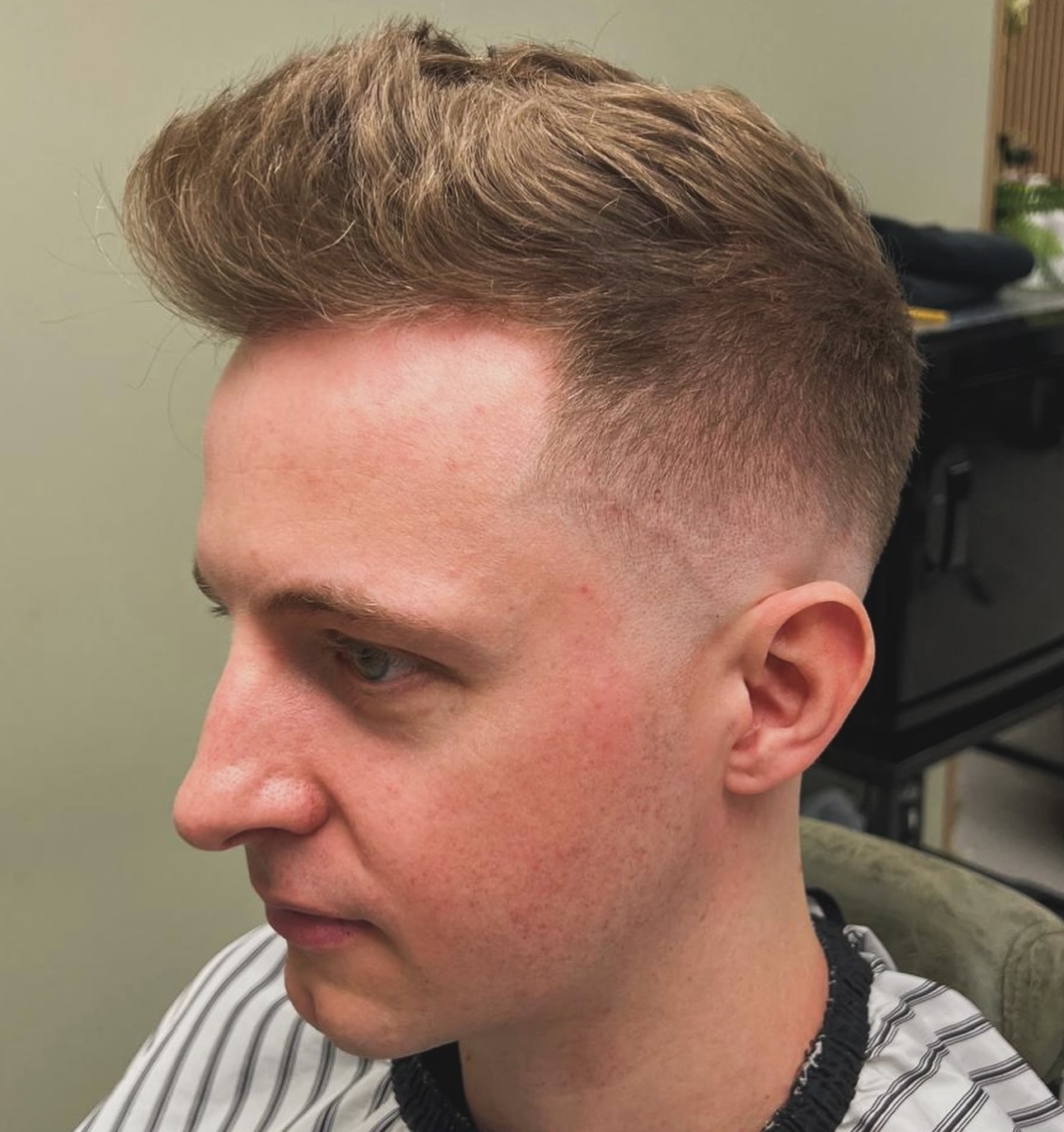 Every haircut begins somewhere and as you can see in this picture, a beginner haircut can also be pretty stylish. The back and sides are completely shaved, while a small portion of hair on top is blended perfectly with the skin fade.