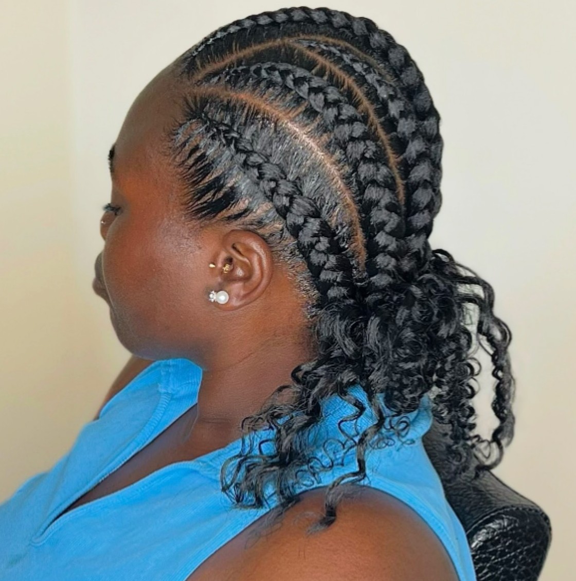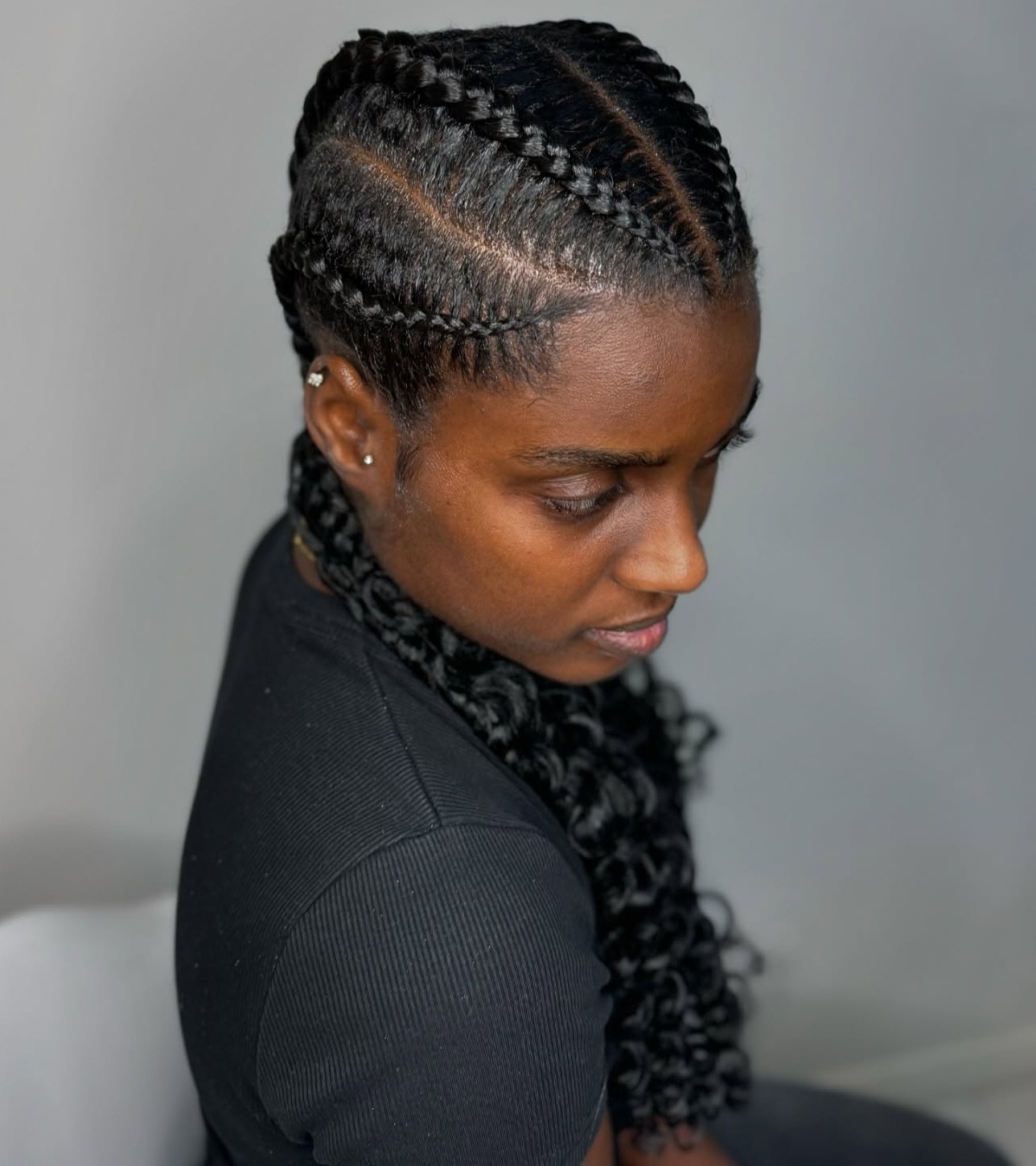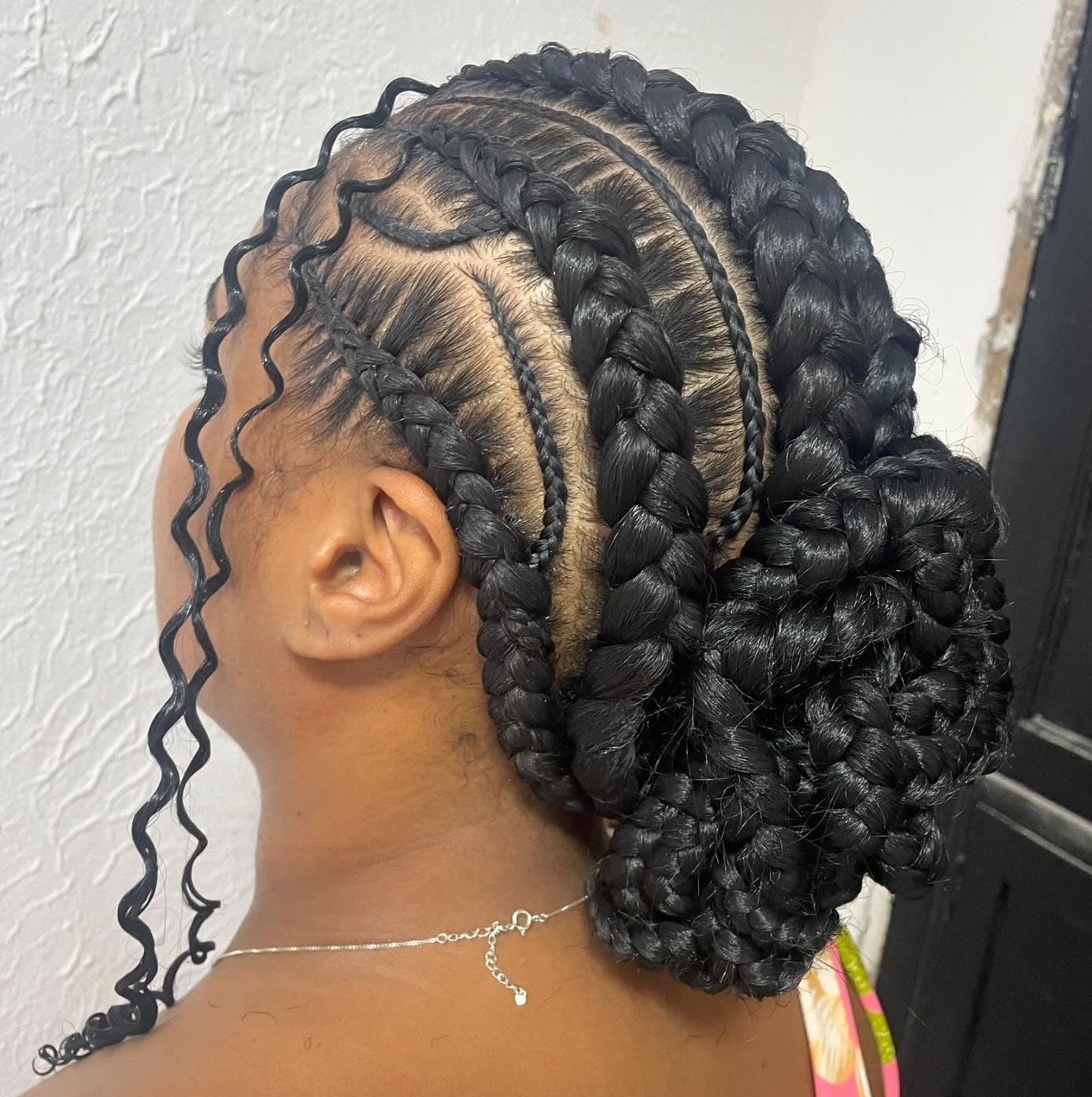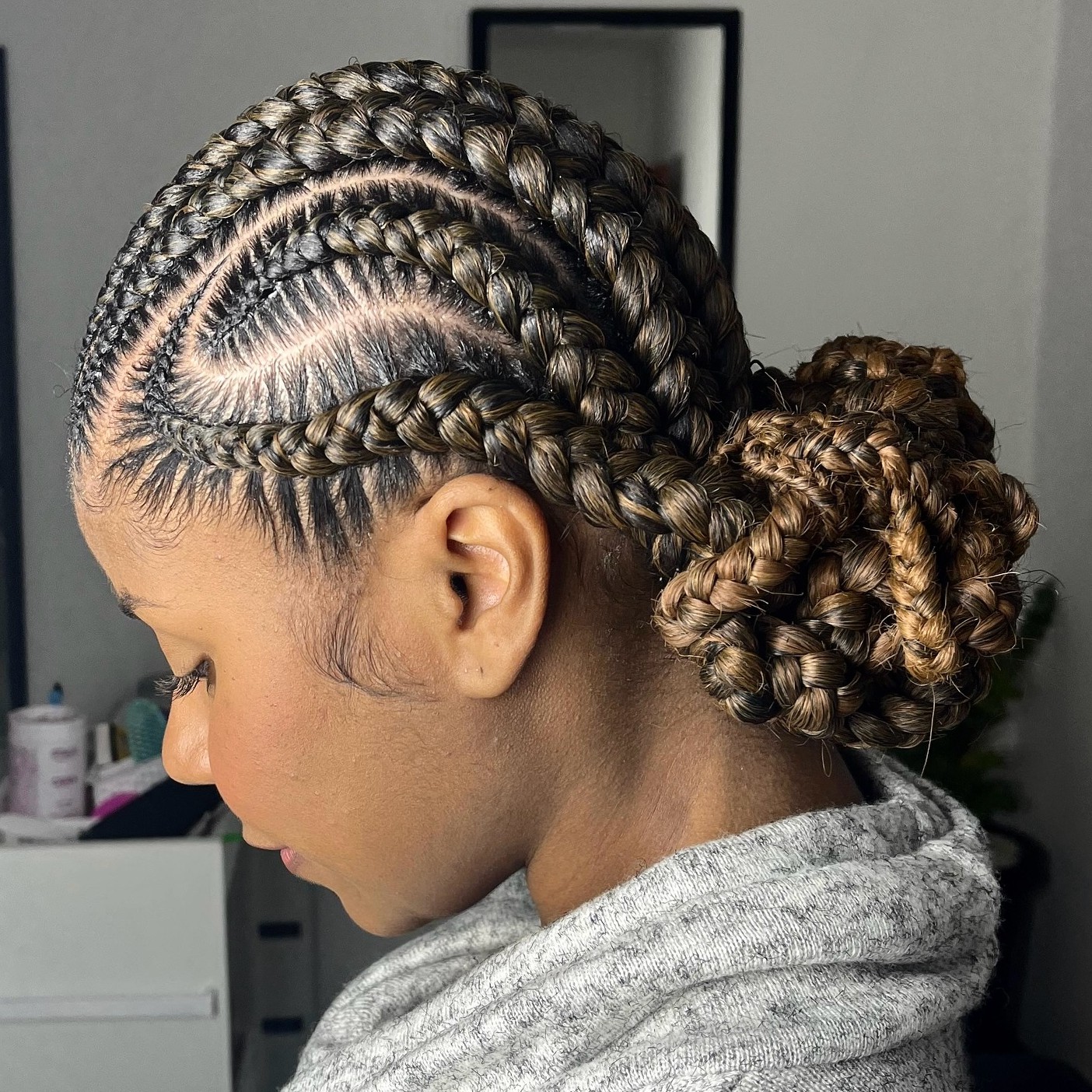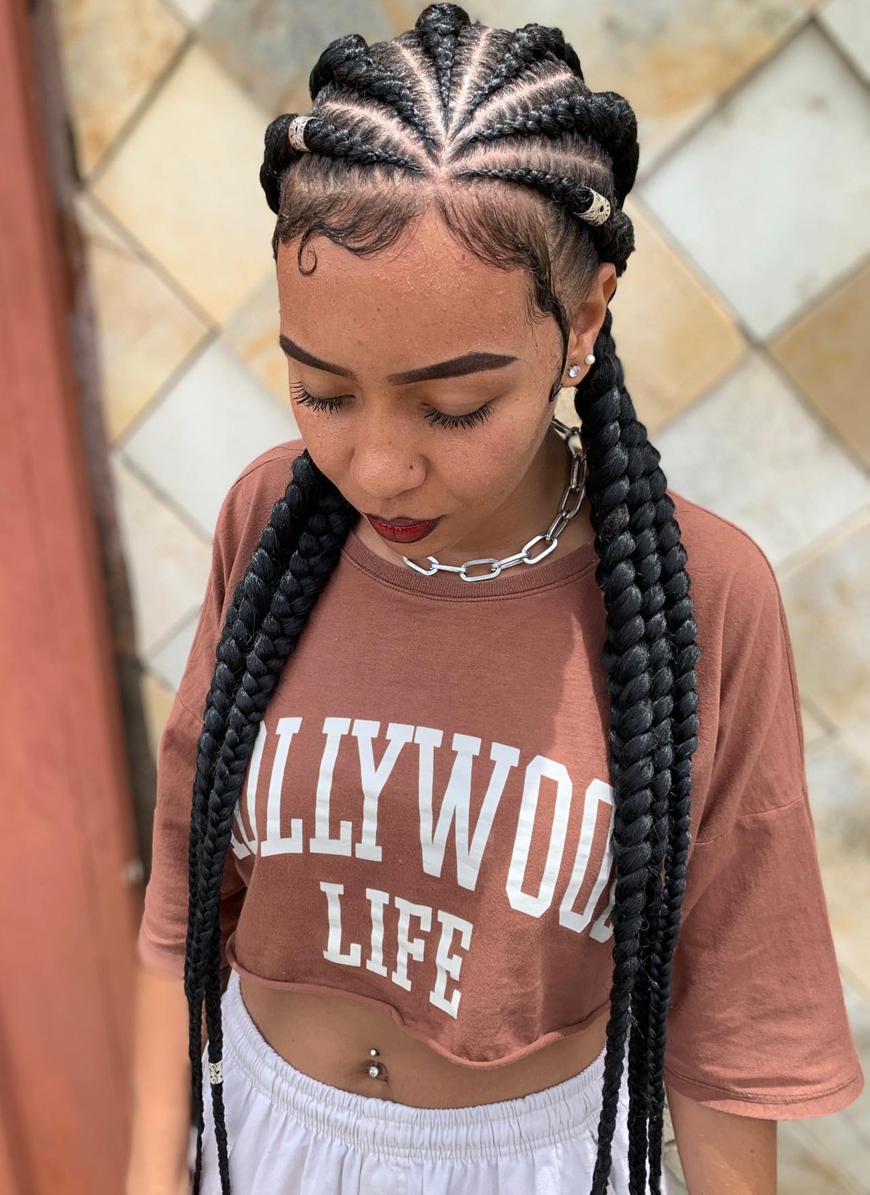 The truth of the matter is that pretty much anyone out there can rock intricate designs with their hair. Using small goddess braids along with some chunkier plaits means that you choose an urban style fit for a queen. Look at these flared rows, they are just stunning.