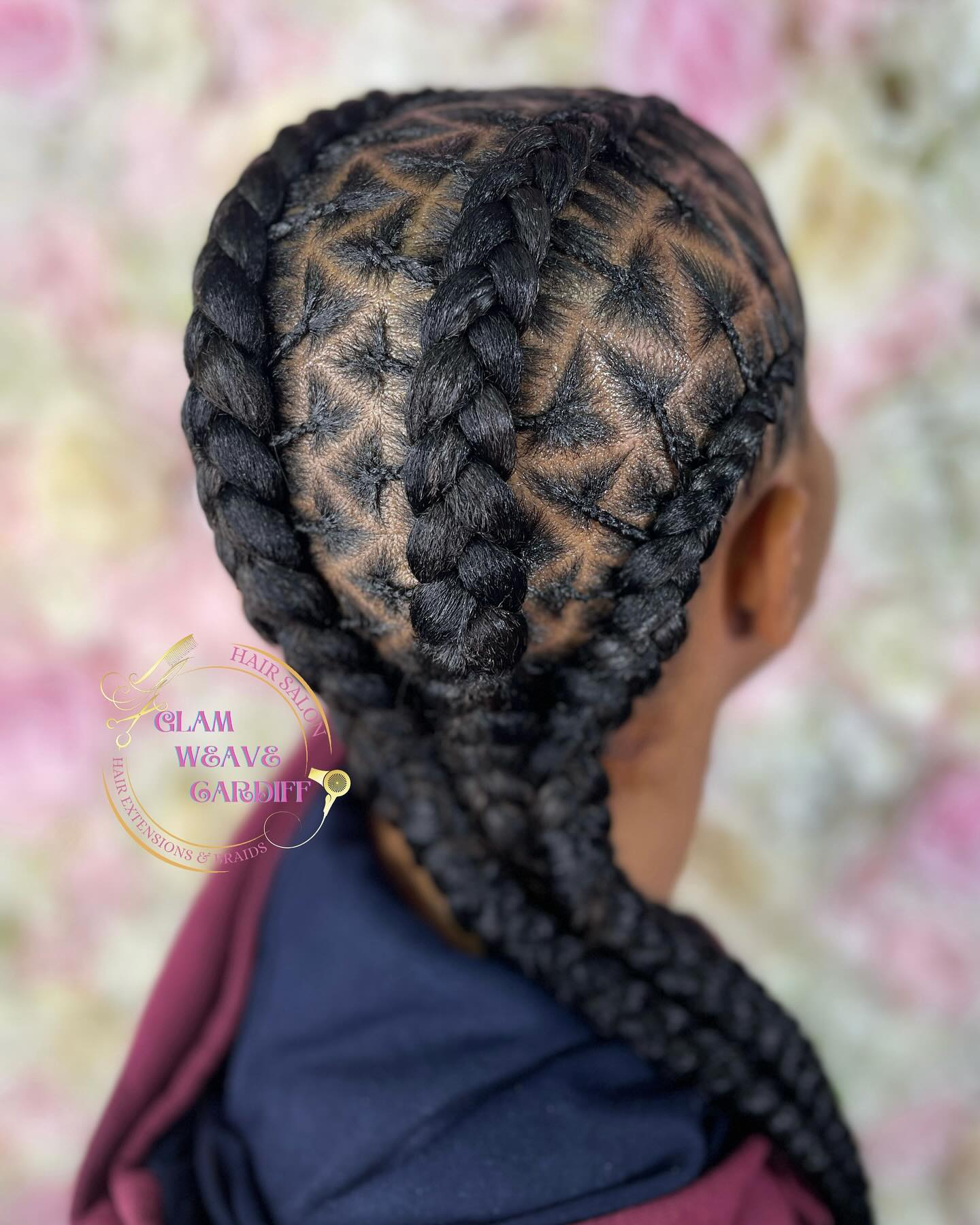 The truth of the matter is that pretty much anyone out there can rock intricate designs with their hair. Using small goddess braids along with some chunkier plaits means that you choose an urban style fit for a queen. Look at these flared rows, they are just stunning.