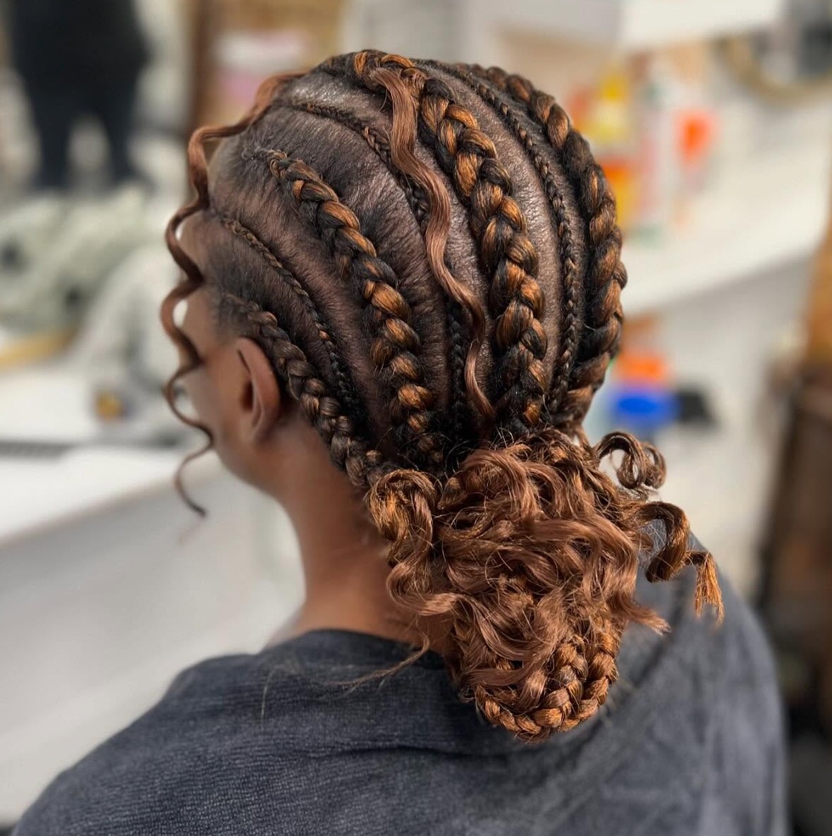 The truth of the matter is that pretty much anyone out there can rock intricate designs with their hair. Using small goddess braids along with some chunkier plaits means that you choose an urban style fit for a queen. Look at these flared rows, they are just stunning.