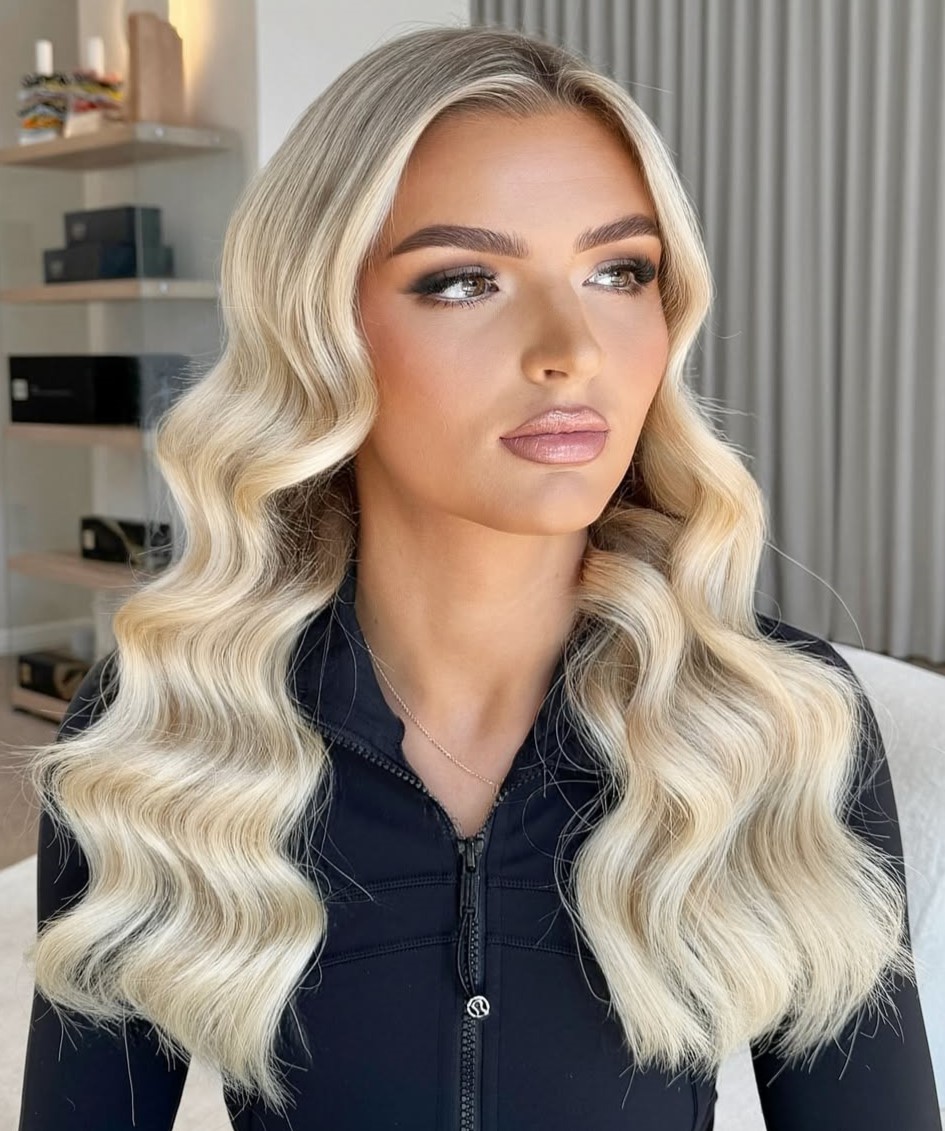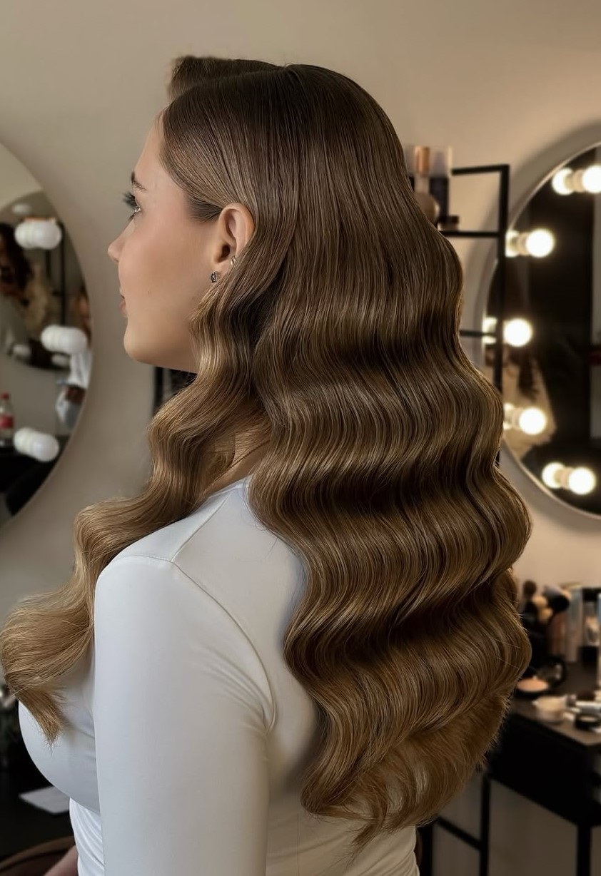 Soft, brushed-out waves are an absolute no-brainer for glam hairstyles. More relaxed than regular “party curls,” Hollywood waves virtually channel a laid-back vibe. Use a medium-sized curling wand and curl all your hair in the same direction, let them cool down, and brush the curls out. Voila, you are ready to party all night long.