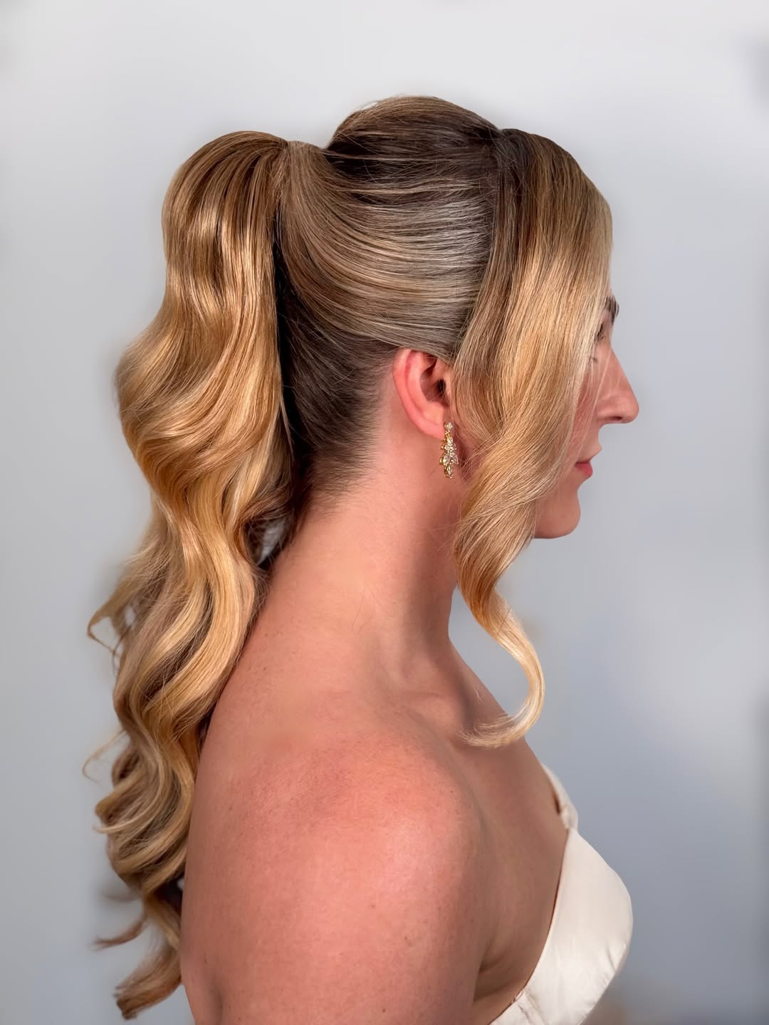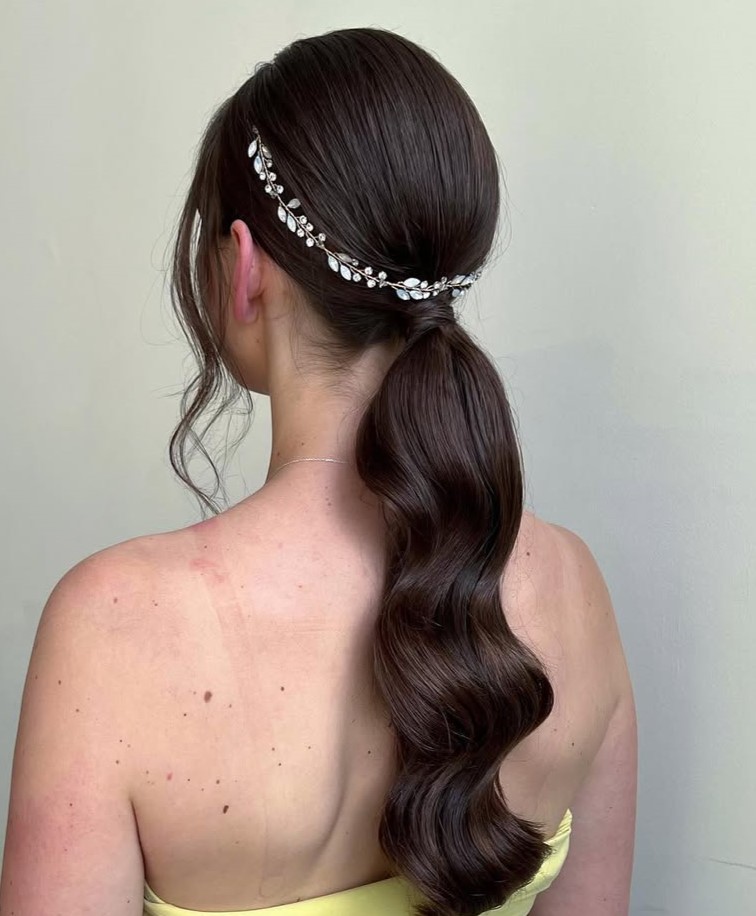 Is hair up too formal for you, whilst hair down won’t make you look special enough for your friend’s wedding? Look no further! A ponytail with delicate waves and loads of volume is the happy medium. Finish it with pearl or crystal pins to add a striking accent.