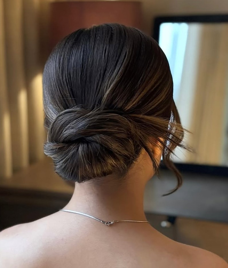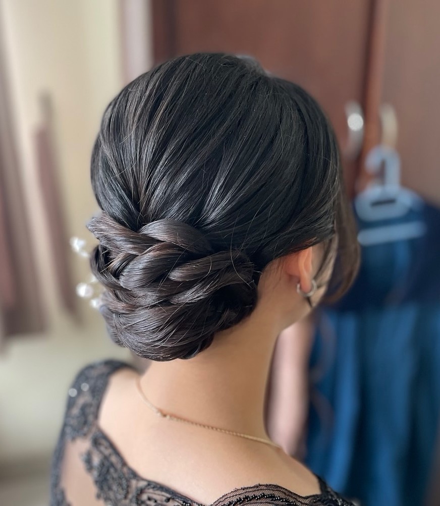 A sleek chignon is a timeless hairstyle that always wins in wedding season. Perhaps it’s the simplicity, or maybe the vintage vibe, but long-haired beauties will pull off this simple style beautifully.