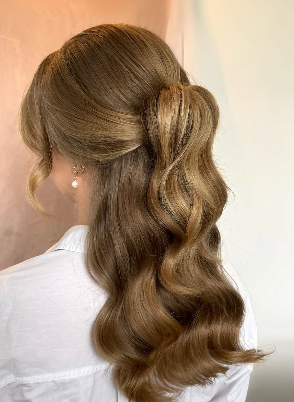 Is hair up too formal for you, whilst hair down won’t make you look special enough for your friend’s wedding? Look no further! A ponytail with delicate waves and loads of volume is the happy medium. Finish it with pearl or crystal pins to add a striking accent.