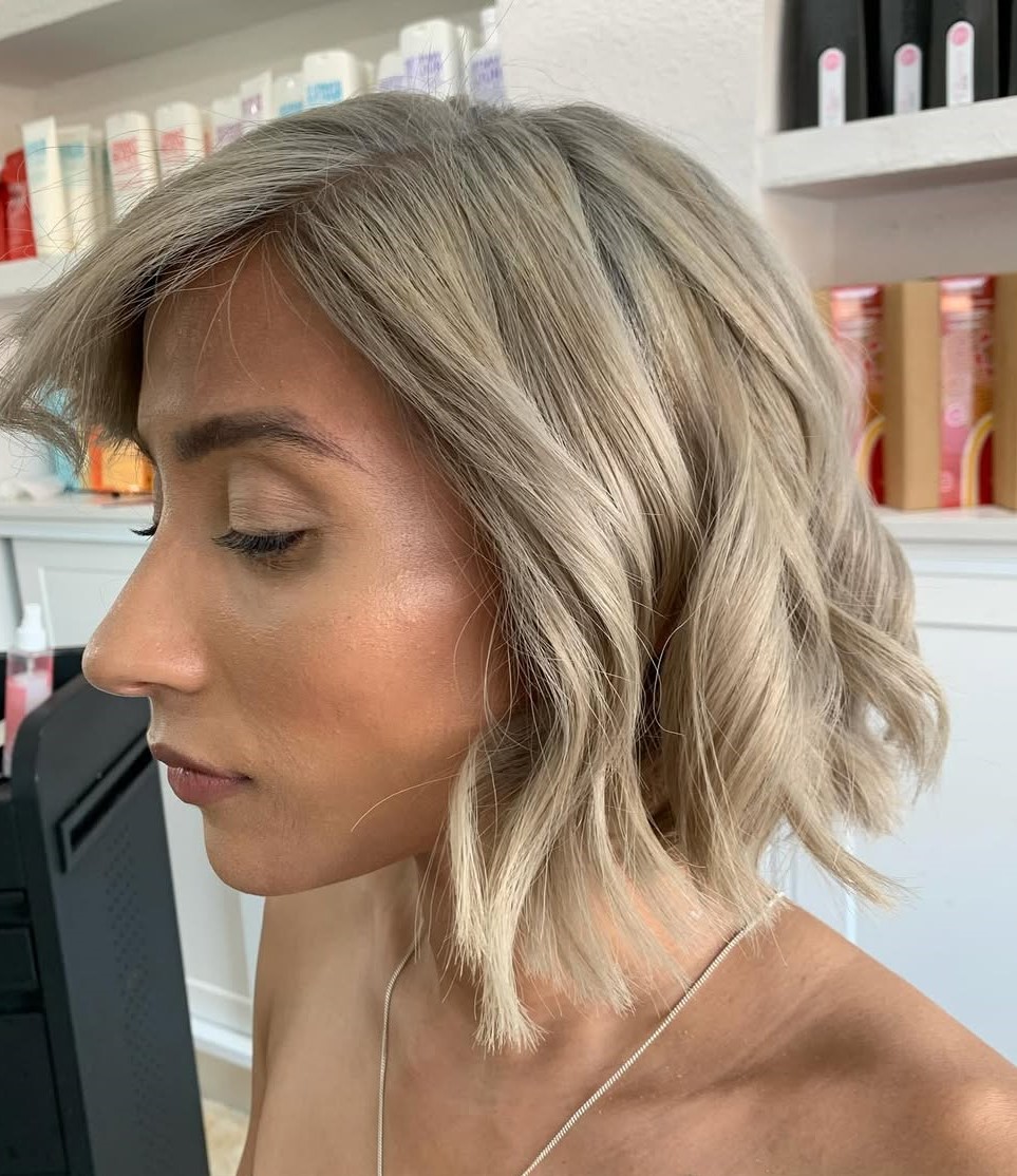 If updos feel too formal for you, opt for a simple blowout. You will need a volumizing spray or mousse, a round brush, and a hair dryer to create this look. Blow-dry all your hair up and forward, then change the direction and move it backward. This way, you will get that lovely, side-swept fringe look.