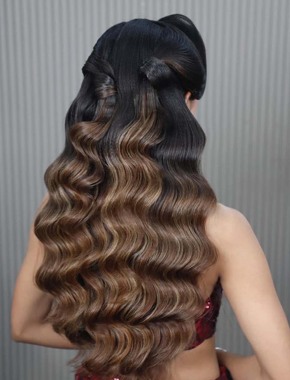 Soft, brushed-out waves are an absolute no-brainer for glam hairstyles. More relaxed than regular “party curls,” Hollywood waves virtually channel a laid-back vibe. Use a medium-sized curling wand and curl all your hair in the same direction, let them cool down, and brush the curls out. Voila, you are ready to party all night long.