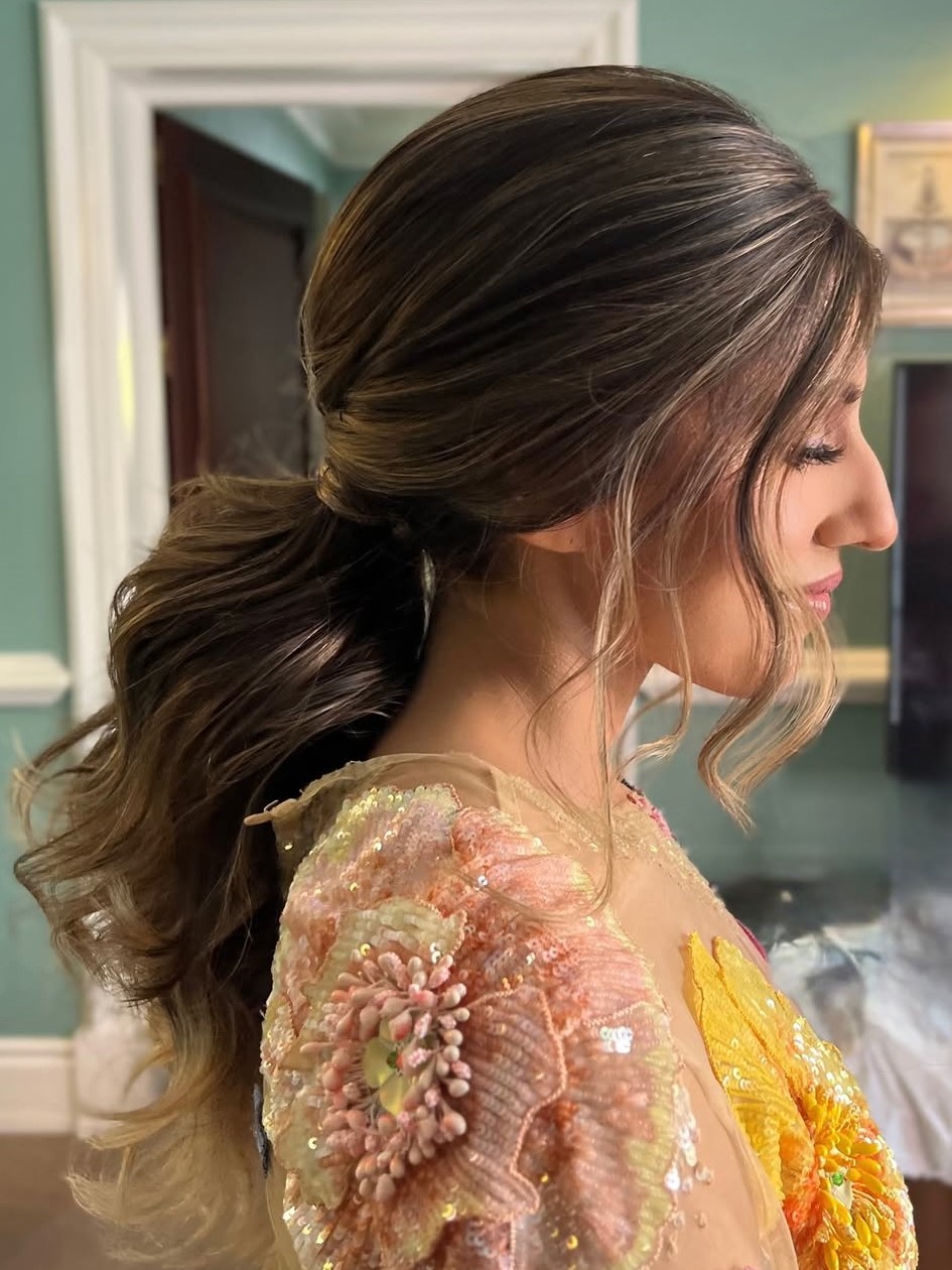 Is hair up too formal for you, whilst hair down won’t make you look special enough for your friend’s wedding? Look no further! A ponytail with delicate waves and loads of volume is the happy medium. Finish it with pearl or crystal pins to add a striking accent.