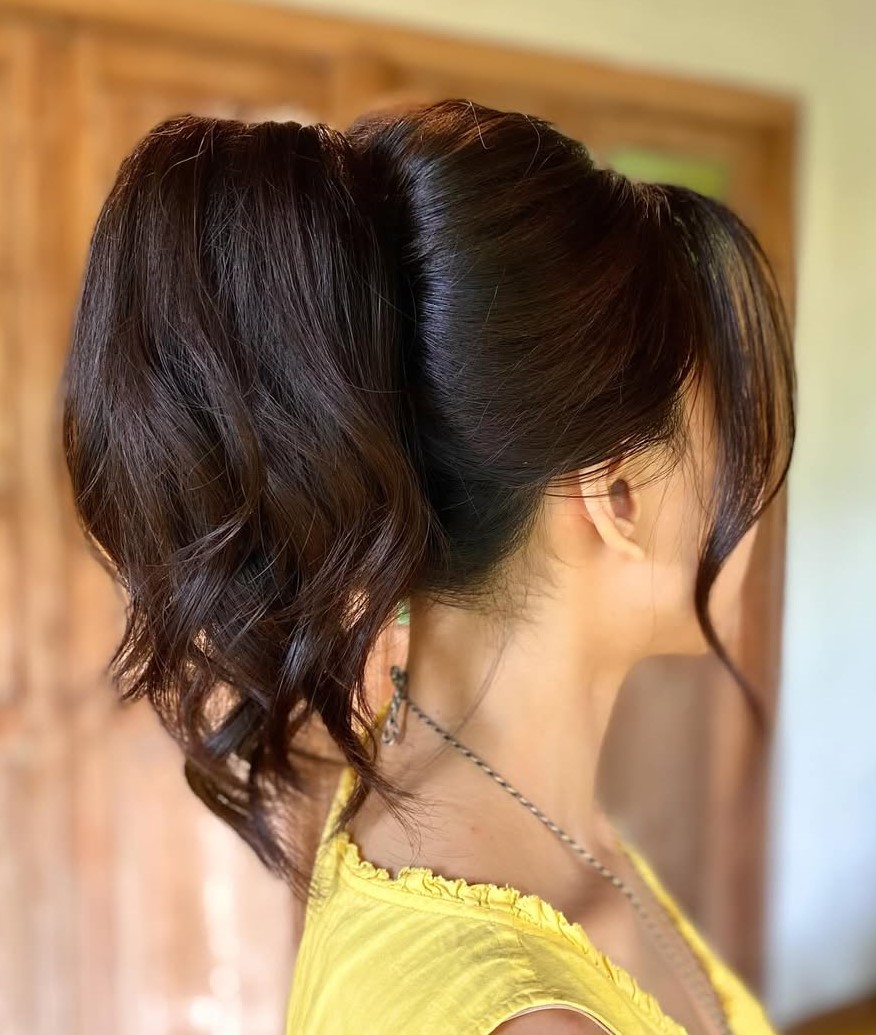 A style that has been around for a while but hasn’t been used very often for festivities is the bubble ponytail. Involving a lot of hair elastics and pins, this style is stunning on very long locks.